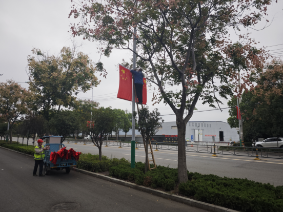 为庆祝中华人民共和国成立76周年,营造喜庆祥和的节日氛围,自9月24日起,应城市城中街道在蒲阳大道、体育路北段两侧灯杆上陆续悬挂国旗500余面。