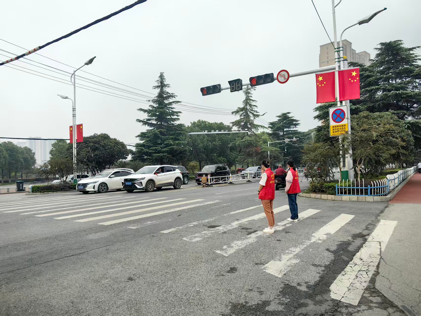 志愿者们身着红马甲,在汉宜路口拥堵点位值守,采用 “定点引导 + 流动巡查” 模式,引导车辆规范停放,劝导占道经营与横穿马路等行为,实时解答群众问路咨询。“请有序排队通行。”“这里不能停车哦!”温馨提示声不断。