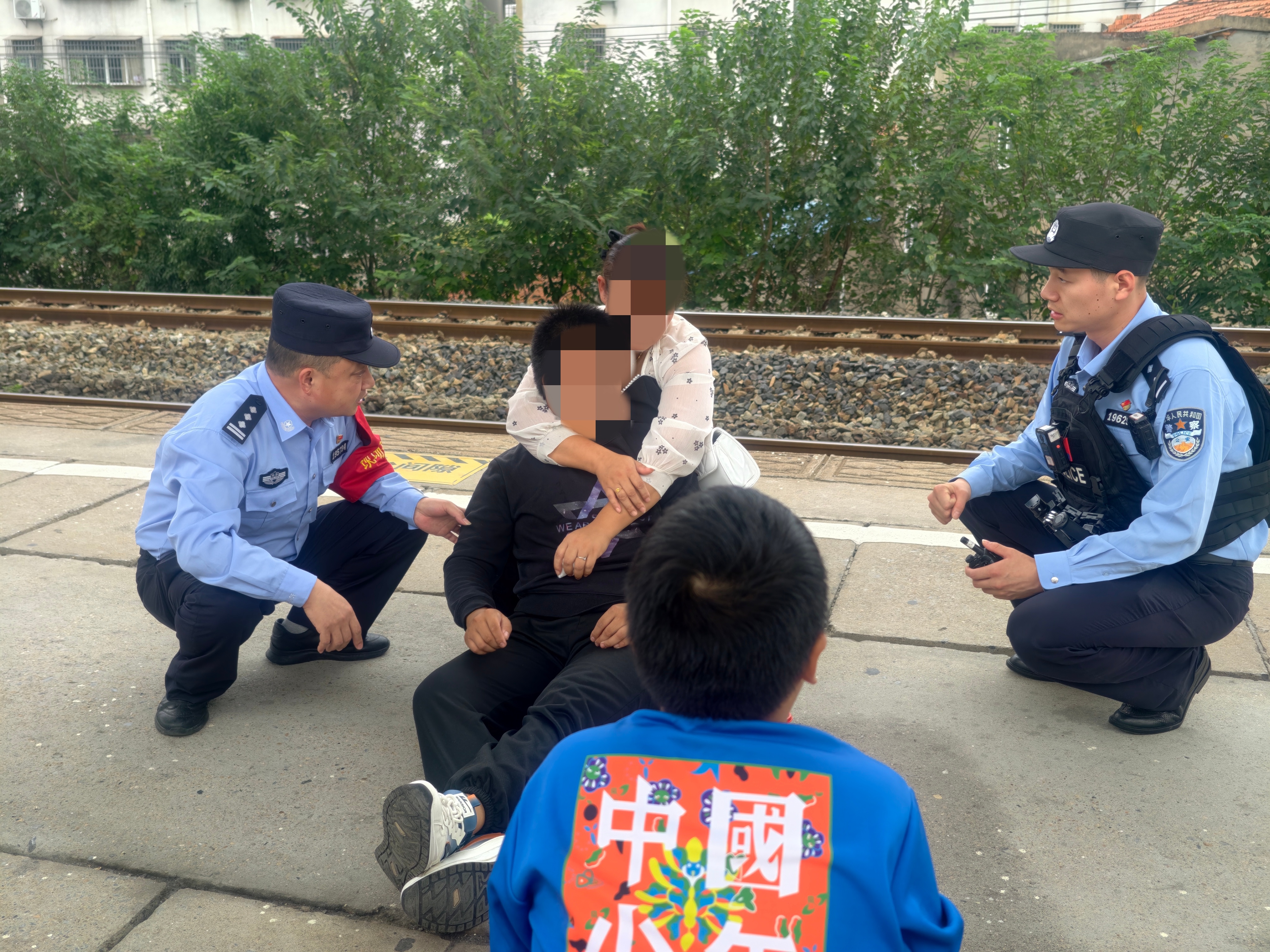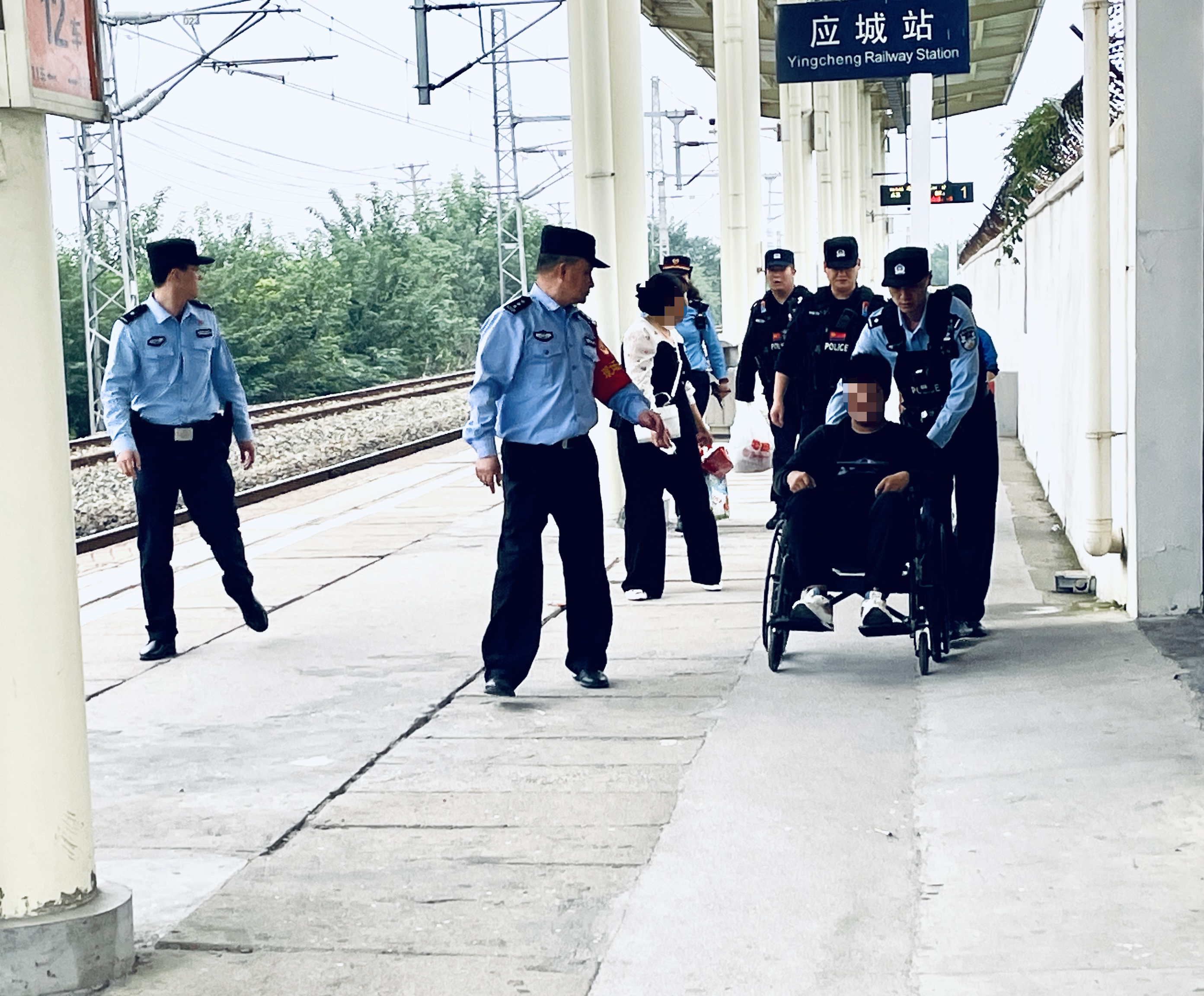 国庆节当日,旅客杨女士与儿子小刘(16岁)一行三人在应城火车站站台候车时,小刘因癫痫病突然倒地并出现肢体抽搐、口吐白沫等症状。应城所值班巡逻民警会同应城市公安局反恐防暴大队特警迅速赶往站台开展救助,将其安置在轮椅上,同时联系120急救中心。