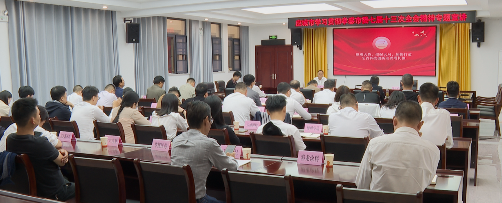 9月29日,由孝感市委宣传部组织开展的学习贯彻孝感市委七届十三次全会精神专题宣讲活动在应城举行。此次活动由孝感市科技局党组书记、局长杨炎峰作专题宣讲,来自孝感市、应城市两级党代会代表、人大代表、政协委员,村(社区)“两委”代表、村(社区)居民代表,企业、新经济组织代表和其他党政干部等50余人参会。
