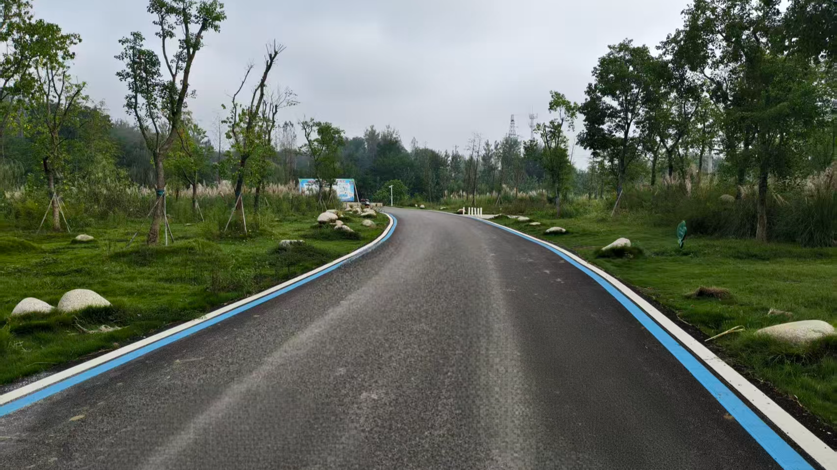 在该镇长李村樊家营景区,崭新的沥青路面平坦开阔,两侧蓝白相间的路沿石整齐划一,为景区区增添了一抹亮色。道路两旁的绿化带经过精心修剪,花草树木错落有致,与远处的青山绿水相得益彰,令人心旷神怡。