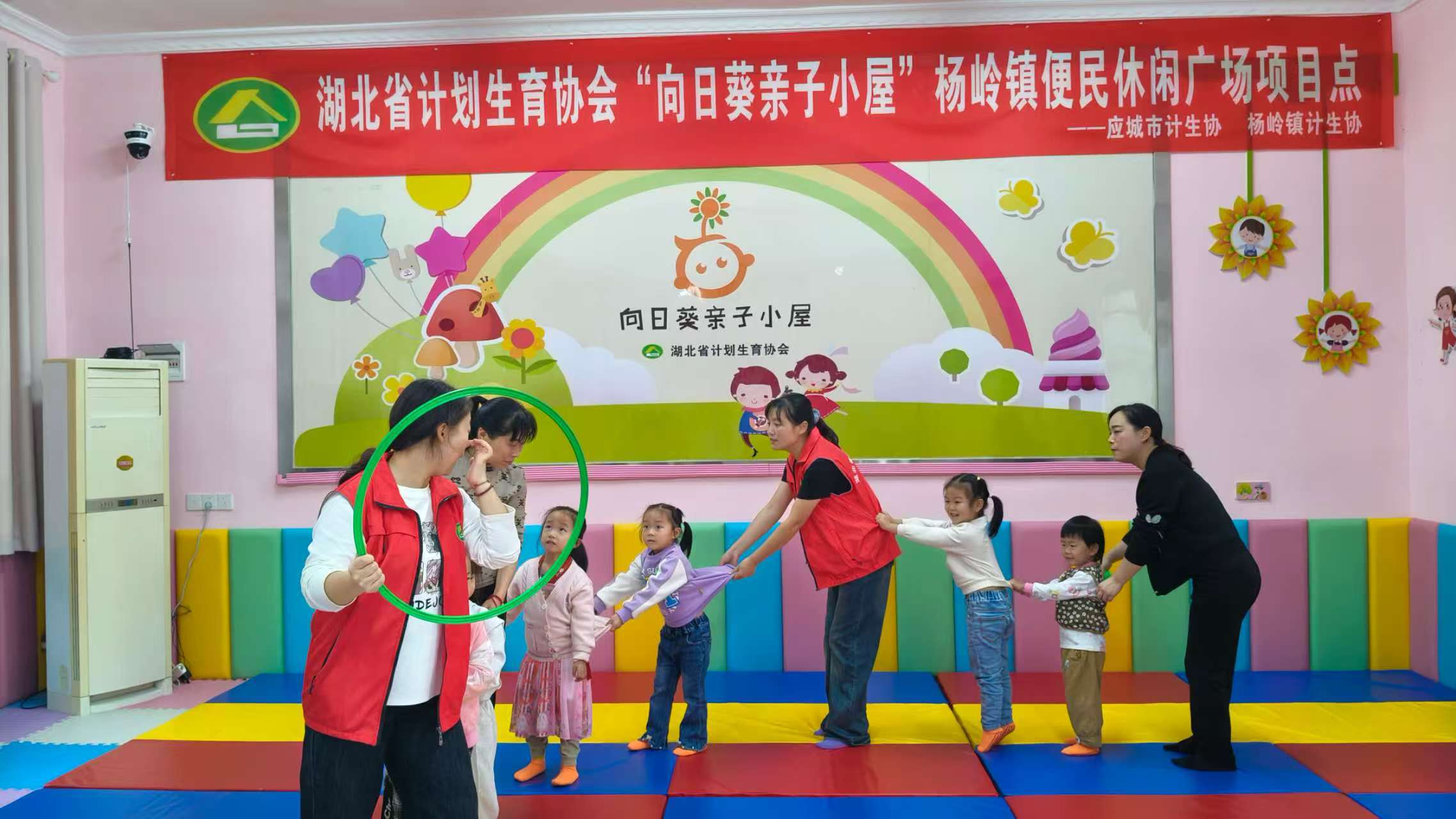 手牵手,乐悠悠。近日,湖北省计生协 “向日葵亲子小屋” 杨岭镇便民休闲广场项目点,“手牵手 乐悠悠” 亲子活动温馨开展,9 组幼儿家庭参与,计生协志愿者全程引导。