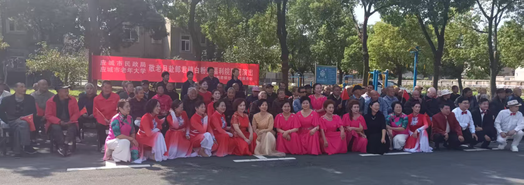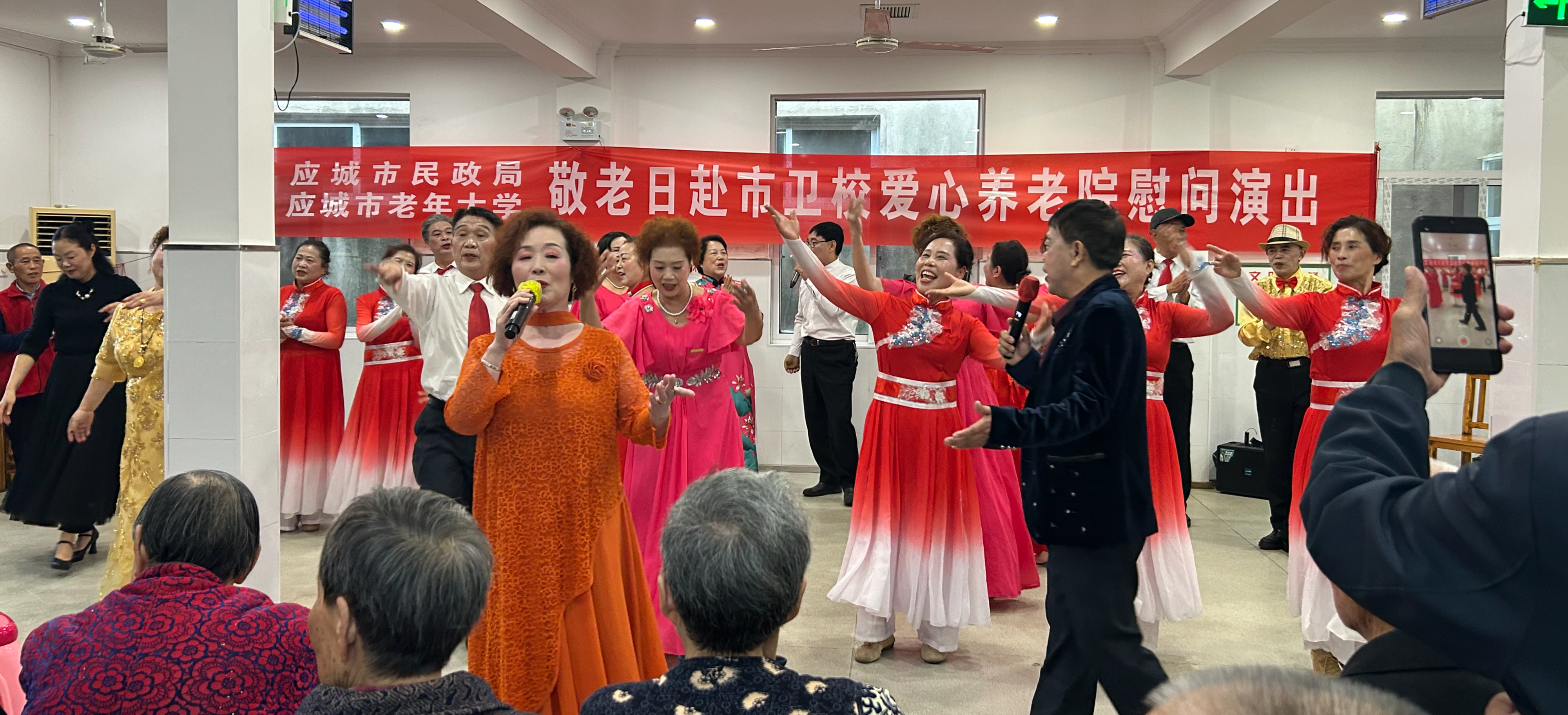 10月14日至15日,应城市民政局联合应城市老年大学艺术团赴郎君镇白粉壁福利院和应城市卫校爱心养老院开展慰问文艺演出。