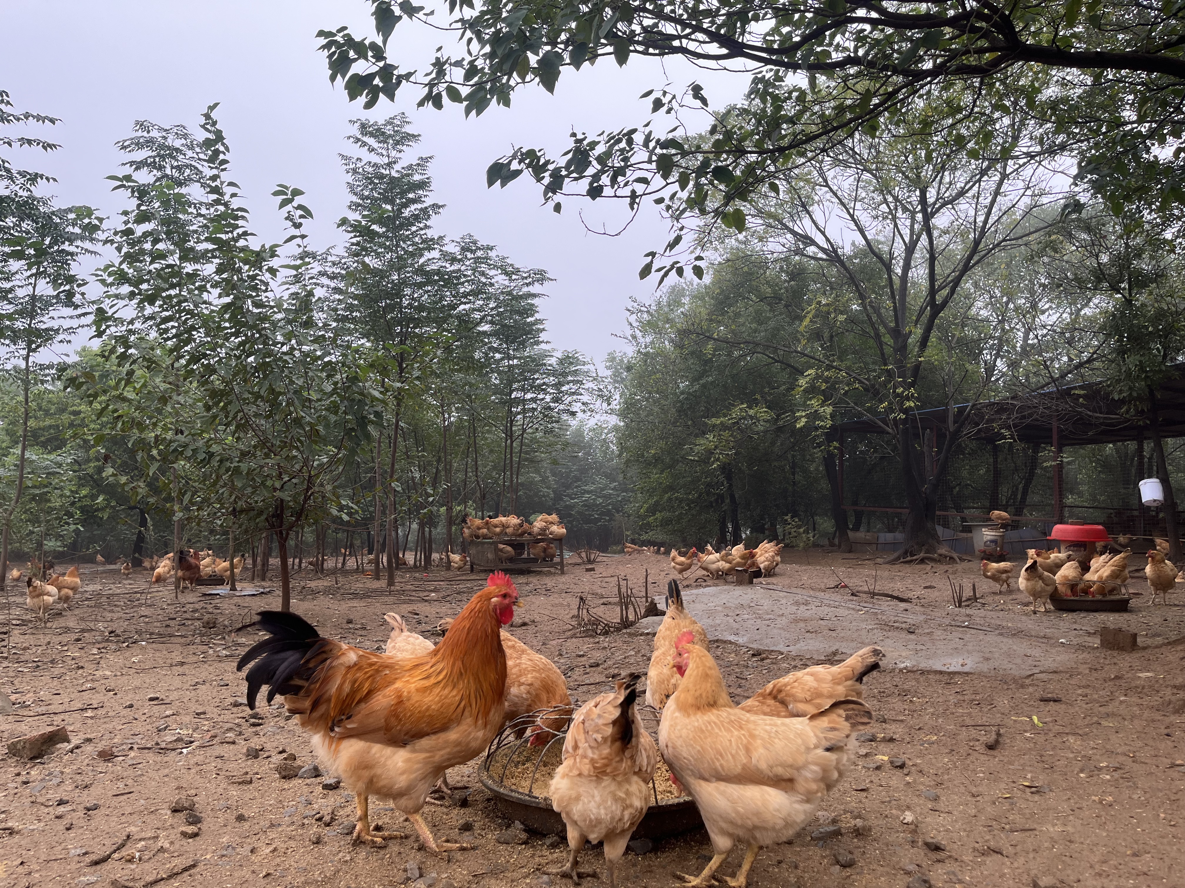 “AILU”志愿者们来到小熊土鸡蛋养殖场,养殖场负责人陈老板如数家珍介绍他的宝贝们。“我们这儿养了2800只纯正土鸡,每天大约能收1500枚鸡蛋。”说着,他指向在林间自在活动的鸡群。