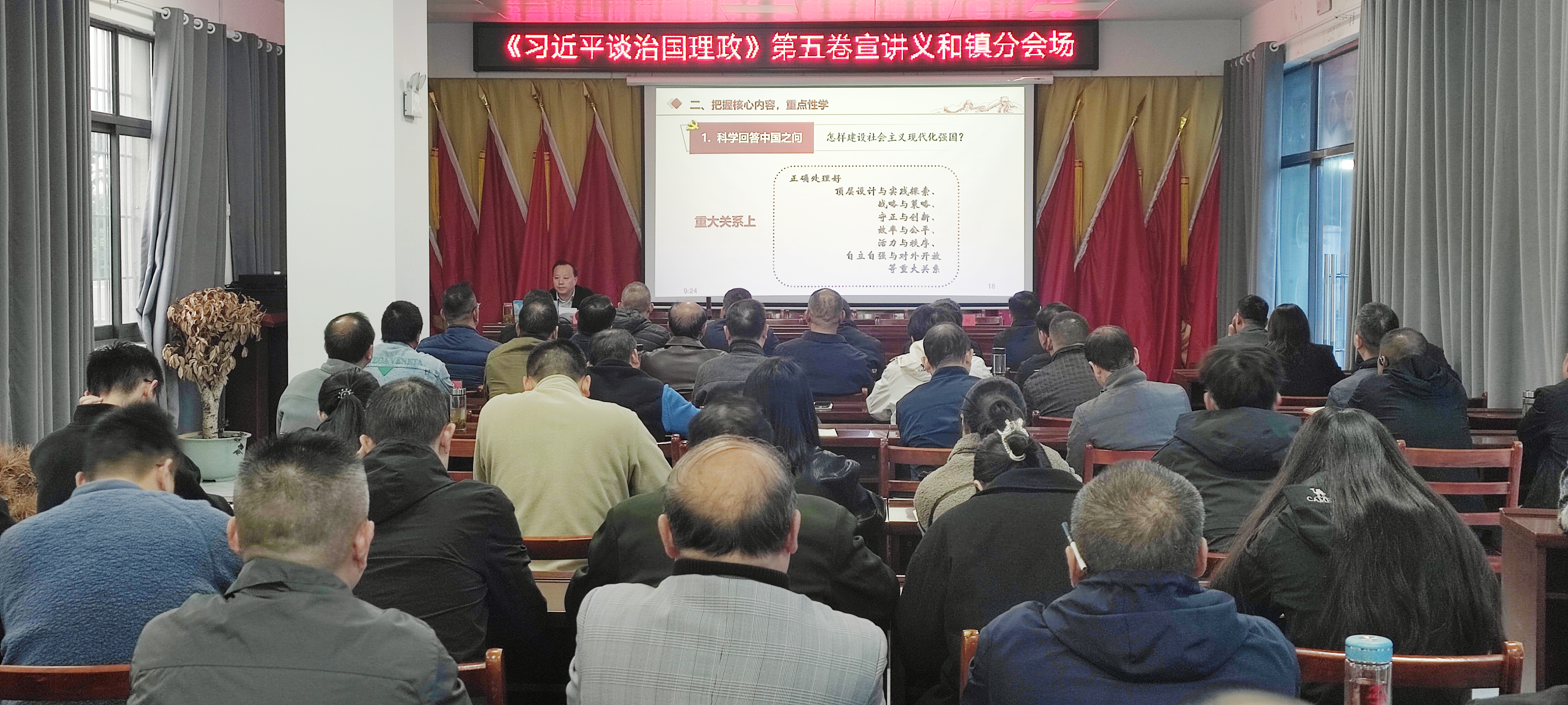 宣讲报告会要求,学习《习近平谈治国理政》第五卷,要坚持一脉相承,系统性学,把握其与前四卷的内在联系,全面掌握习近平新时代中国特色社会主义思想的科学体系;要把握核心内容,重点性学,聚焦中国式现代化等关键要点,领会新思想新观点新论断;要联系发展实际,针对性学,将理论与工作实践相结合,以解决实际问题,推动事业发展。