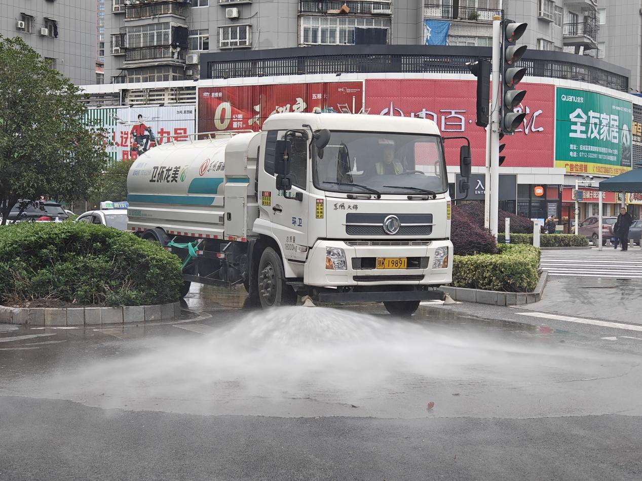 环卫中心同步强化道路机械化作业,根据实时天气情况,灵活调配6台洒水车、4台洗扫车、2台高压冲洗车等设备,对落叶密集路段开展协同攻坚。先由洒水车、雾炮车开展前置降尘,再由洗扫车对路面落叶与积尘进行深度洗扫与收集,最后利用高压冲洗车配合人工抱管对人行道、路缘石、雨水篦等部位进行彻底冲刷,实现“路见本色、尘不上扬”的精细化保洁效果。同时,安排密闭式转运车辆加大清运频次,确保落叶即扫即清、无积存,杜绝二次污染。