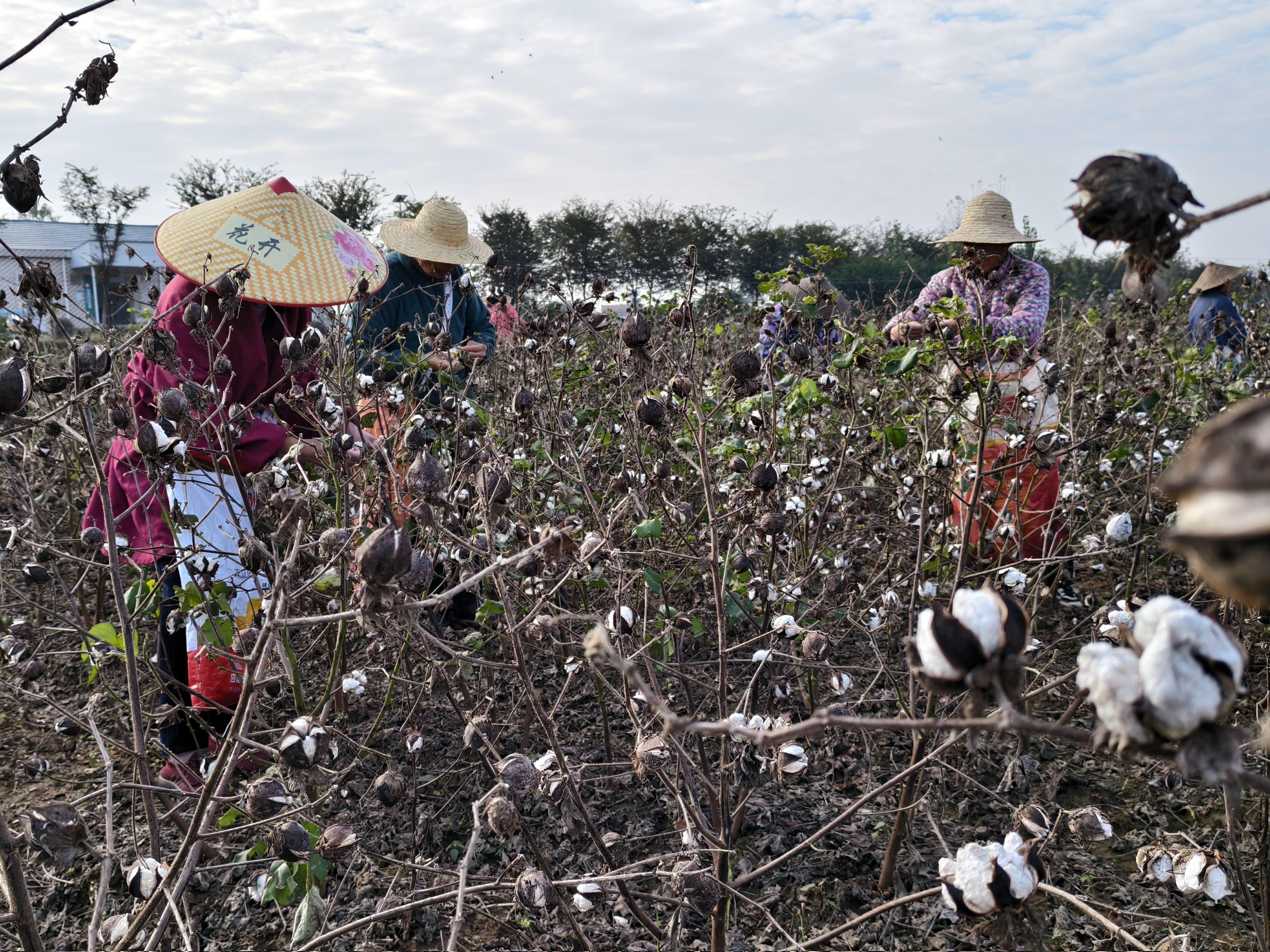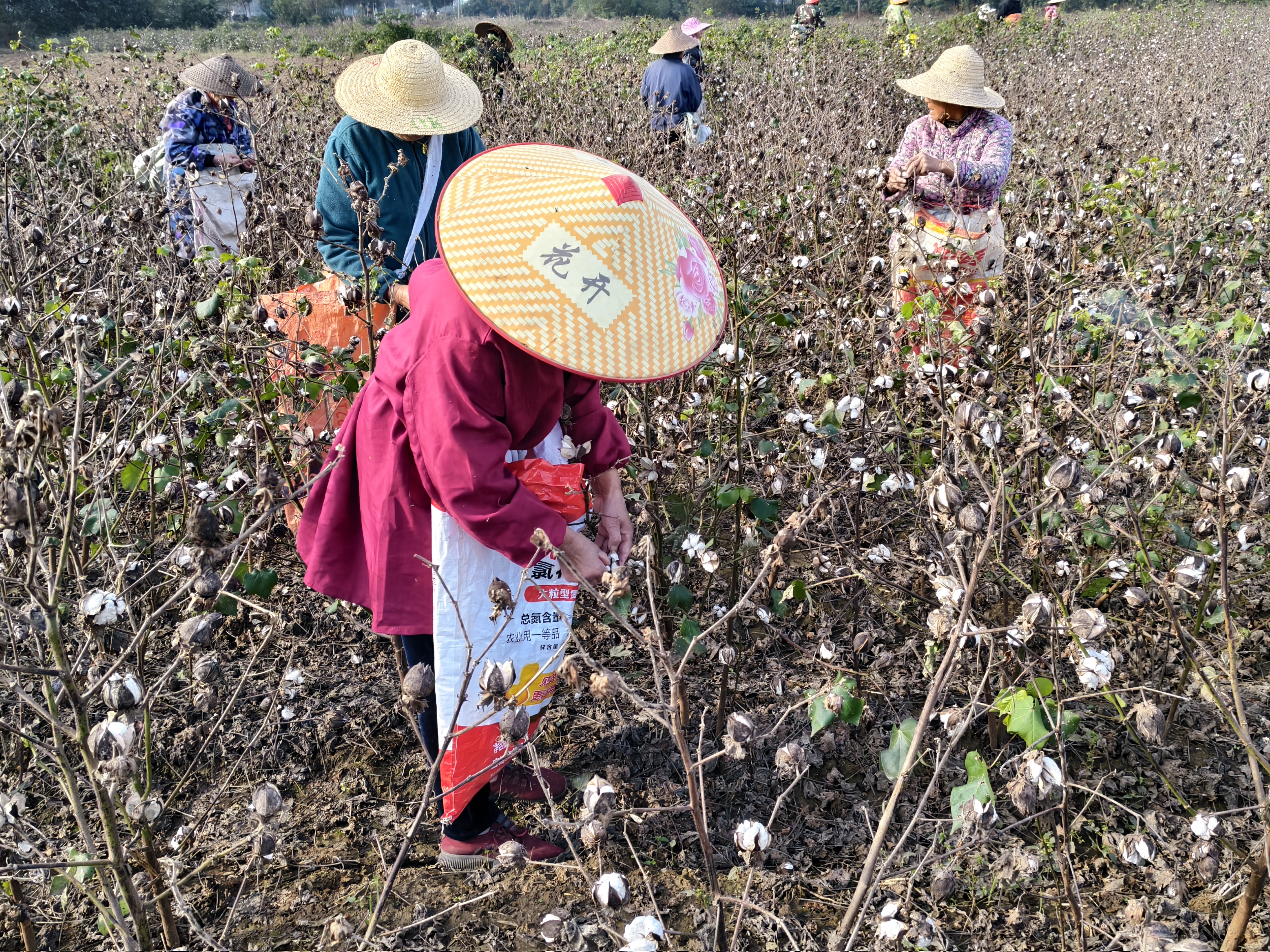 近日,应城市田店镇棉田里一派繁忙景象,村民们正忙着采摘成熟的棉花。