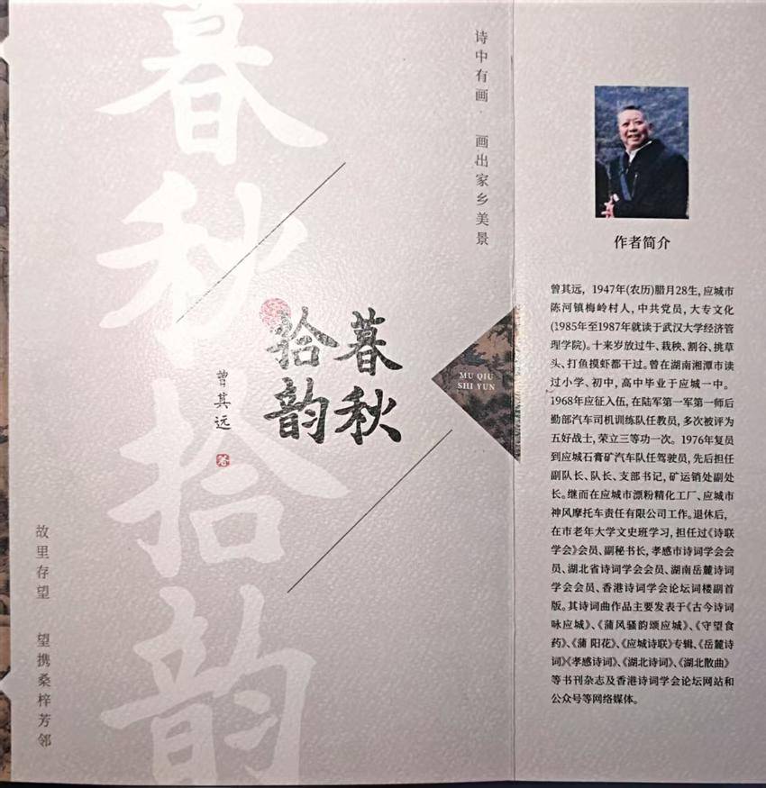重阳节将至,10月25日(农历九月初五)上午,应城诗词楹联学会曾其远先生的诗集《暮秋拾韵》举行发行座谈茶话会。