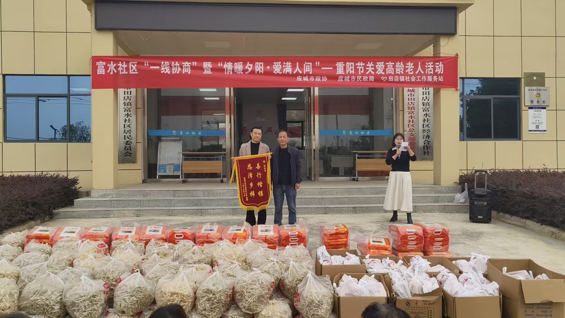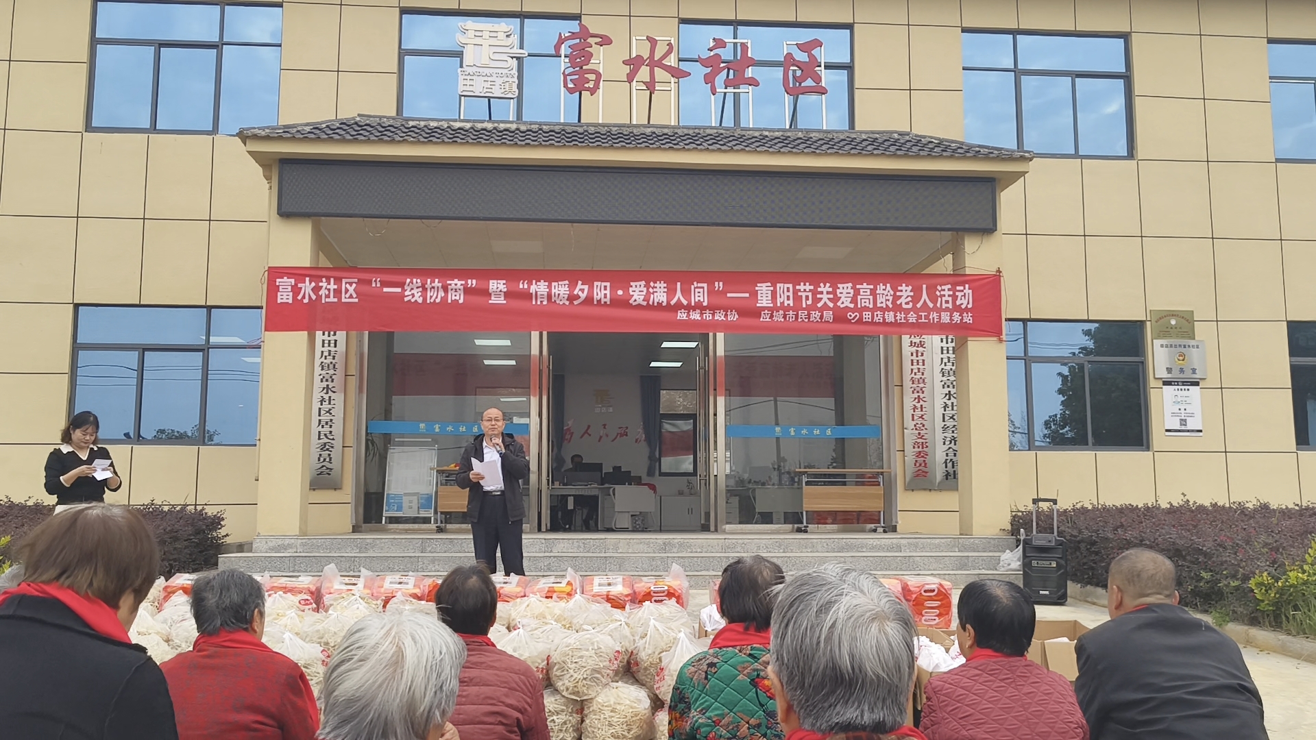 10月29日,应城市田店镇富水社区举办主题为“情暖夕阳•爱满人间”的关爱高龄老人活动,为高龄老人送上节日祝福与关怀。