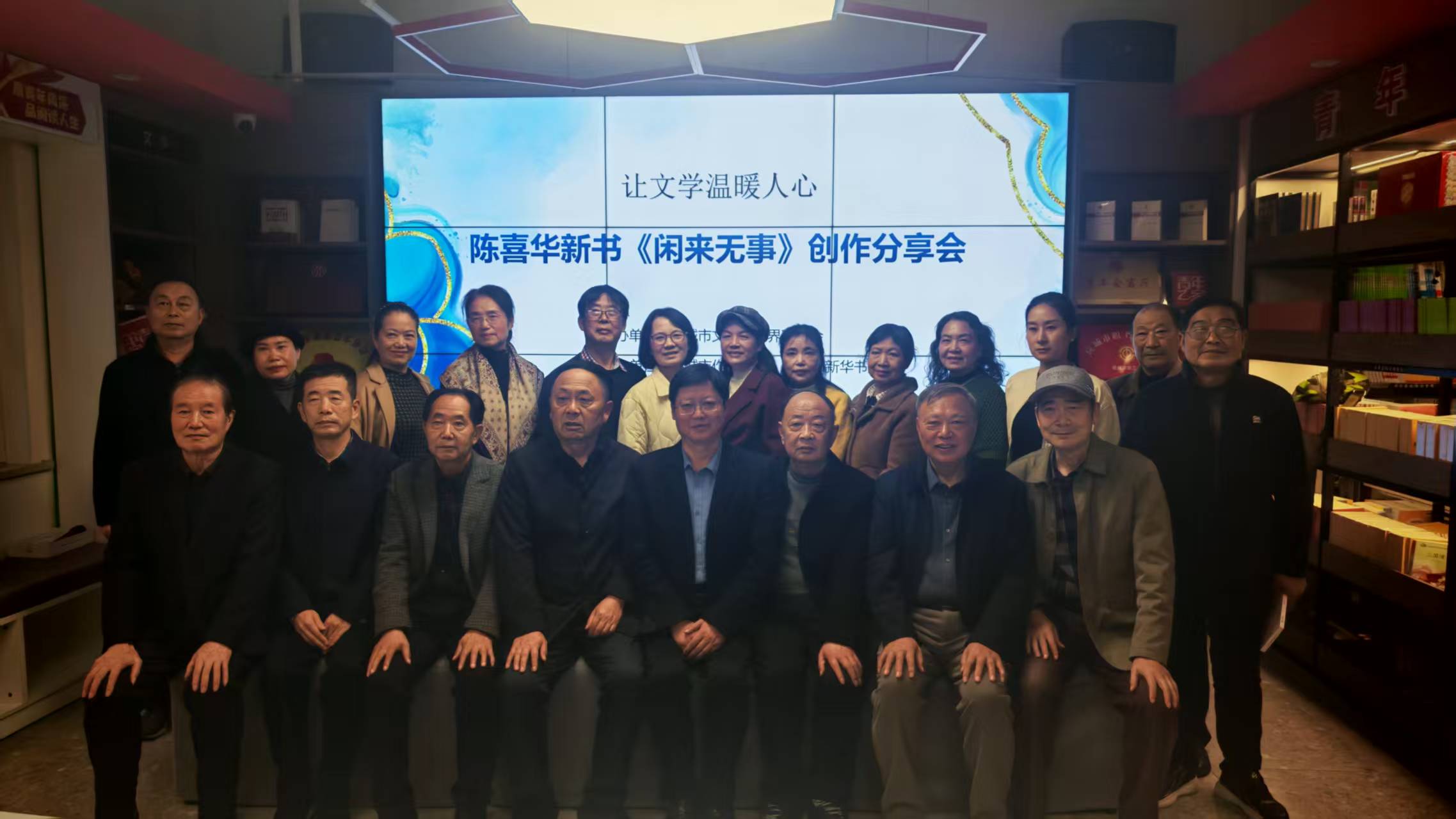 6位嘉宾现场点评,作者陈喜华与会员代表互动交流,文学爱好者朗诵了《闲来无事》书中部分章节,并集体合影留念。