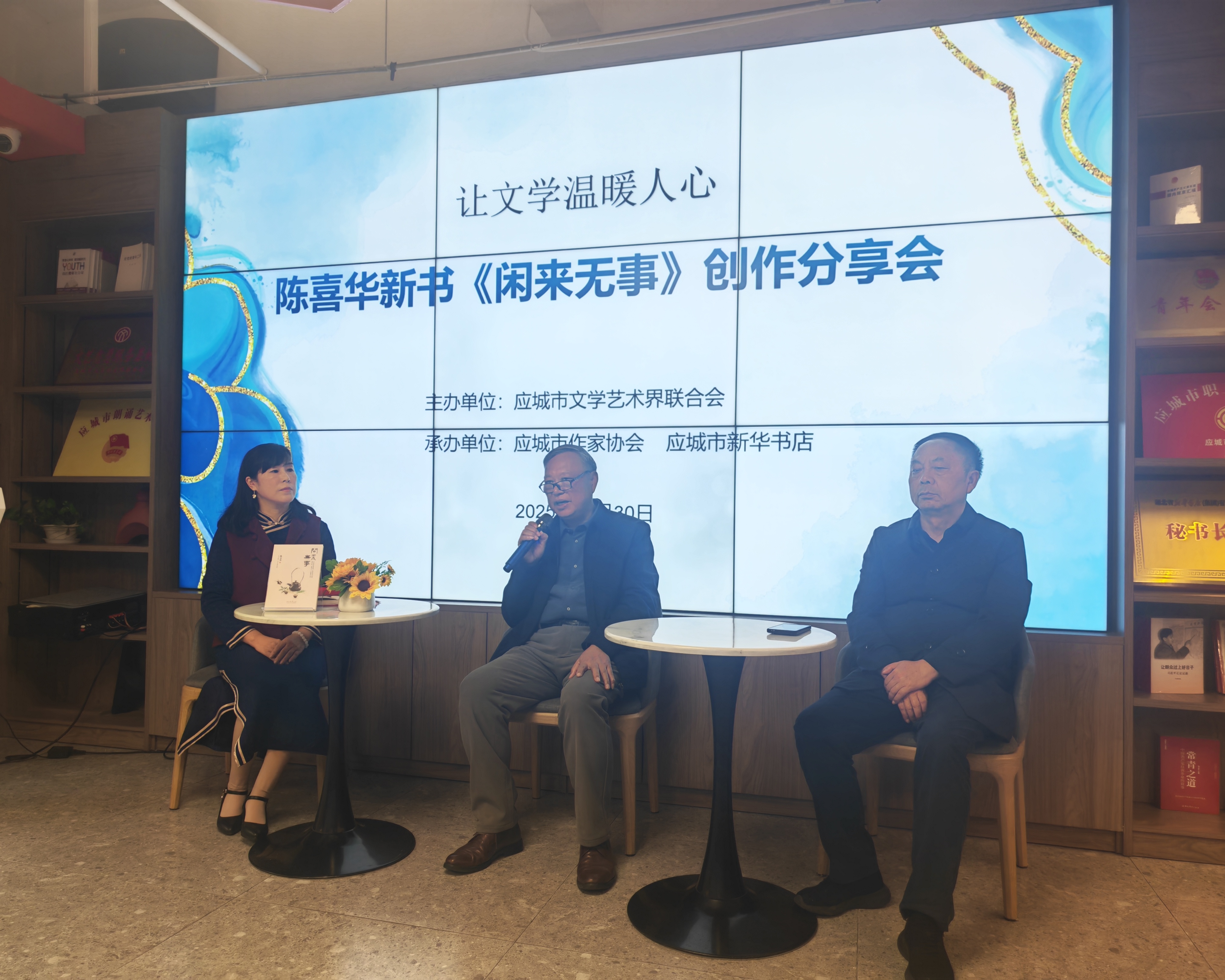 10月30日下午,由应城市文学艺术界联合会主办、应城市作家协会、应城市新华书店承办的“让文学温暖人心”——陈喜华新书《闲来无事》创作座谈会在该市新华书店(北美店)举行。孝感、应城市两地作家协会主要负责人及作协会员代表、文学爱好者到场祝贺。
