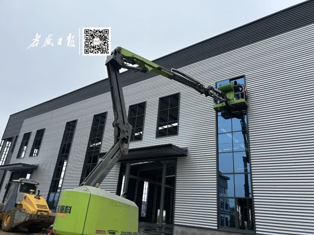 在项目厂房区,工人们乘坐升降机有条不紊地完成玻璃安装等收尾工序。另一侧的立体冷库样品展示区,技术人员穿梭在钢制货架间,手持工具进行最后的调试校准。
