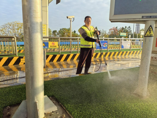 该党支部牵头组建“ AiLu 爱路”志愿服务队,聚焦路域环境重点难点精准破题。针对收费现场沿线的垃圾杂物、杂草枯枝等问题,志愿者们主动分片包干,开展“拉网式”全面清理,有效消除视觉污染;重点推进收费现场车道冲洗作业,运用高压清洗设备对车道内的油渍、粉尘及顽固污渍进行深度清洁,让路面恢复洁净本色,进一步夯实道路通行安全防线。