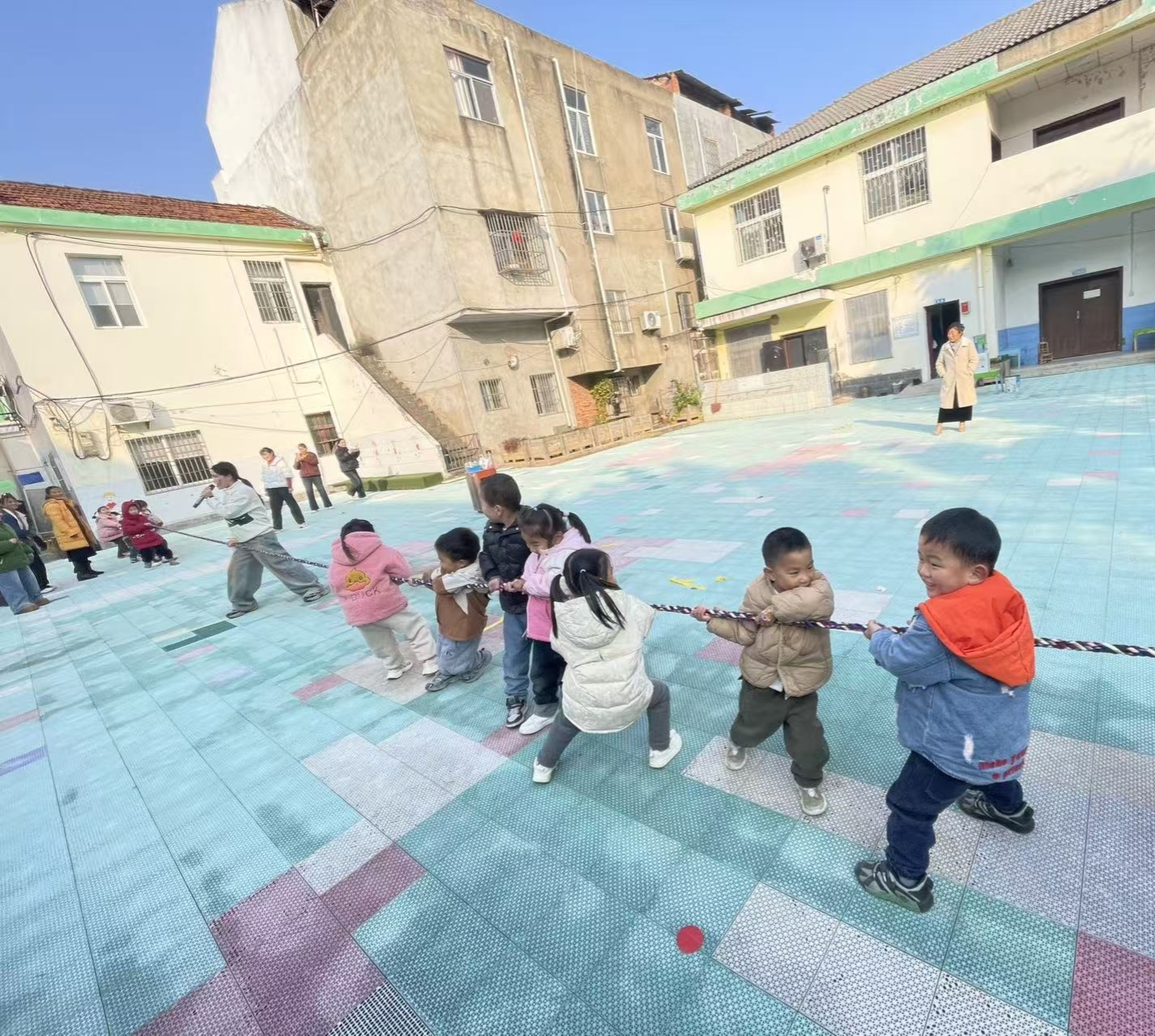 本次亲子活动,以互动环节“小手拍拍”拉开序幕,设置游园闯关、拔河比赛等活动,诚邀家长共同参与。
