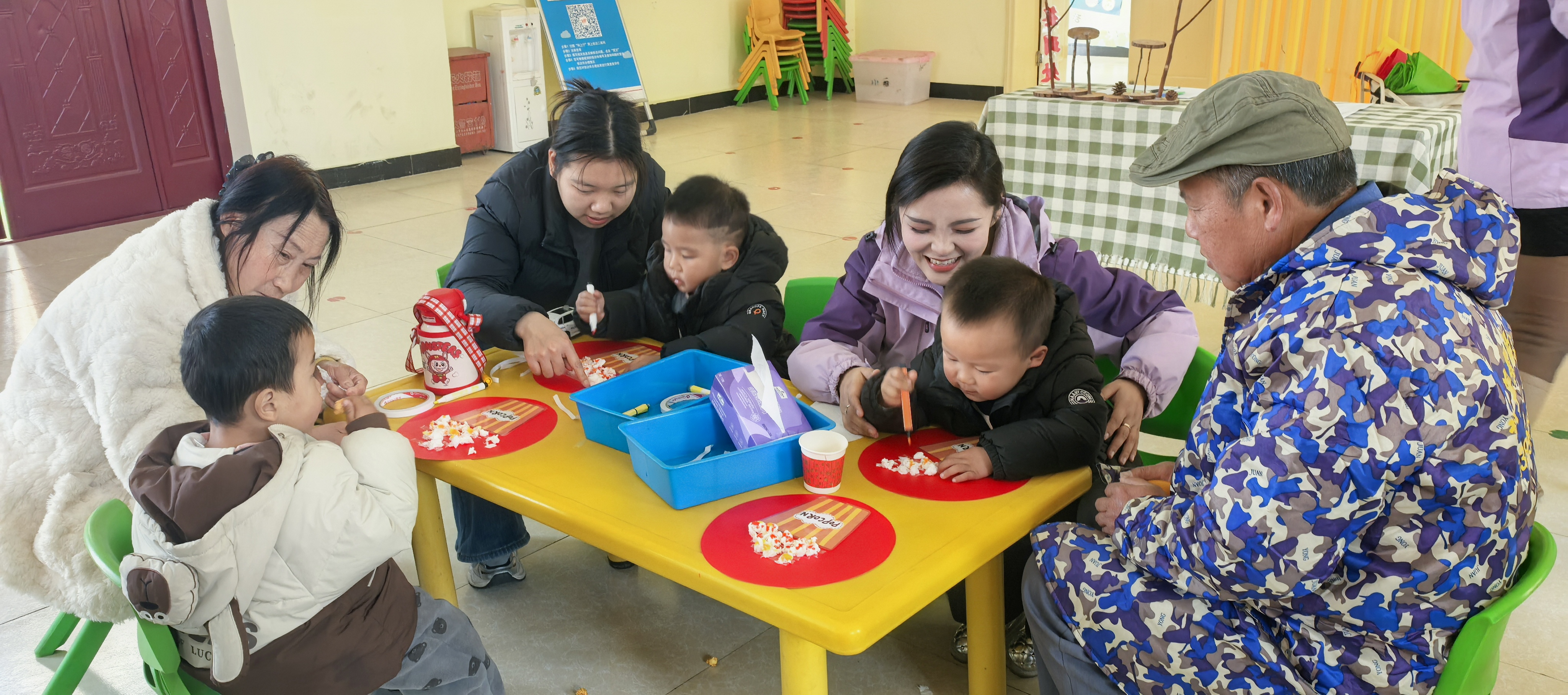 手工制作爆米花环节,幼儿们巧手塑形,用纸巾捏出创意满满的“爆米花”,成就感慢慢。甜蜜点心时刻,大家围坐分享美食,欢声笑语不断。