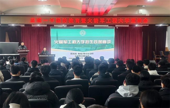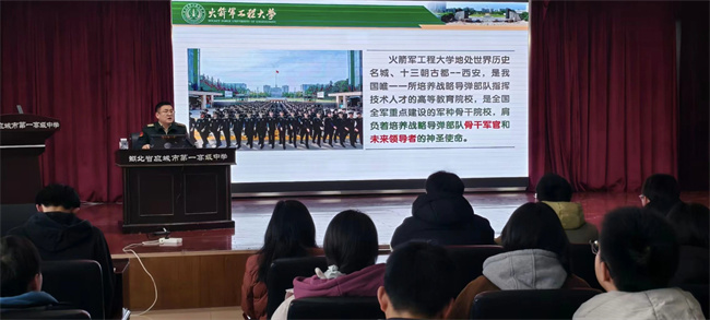 1月16日,应城市第一高级中学特邀火箭军工程大学蔡光斌教授,为高一年级学生作国防知识专题讲座,并宣讲该校招生政策。