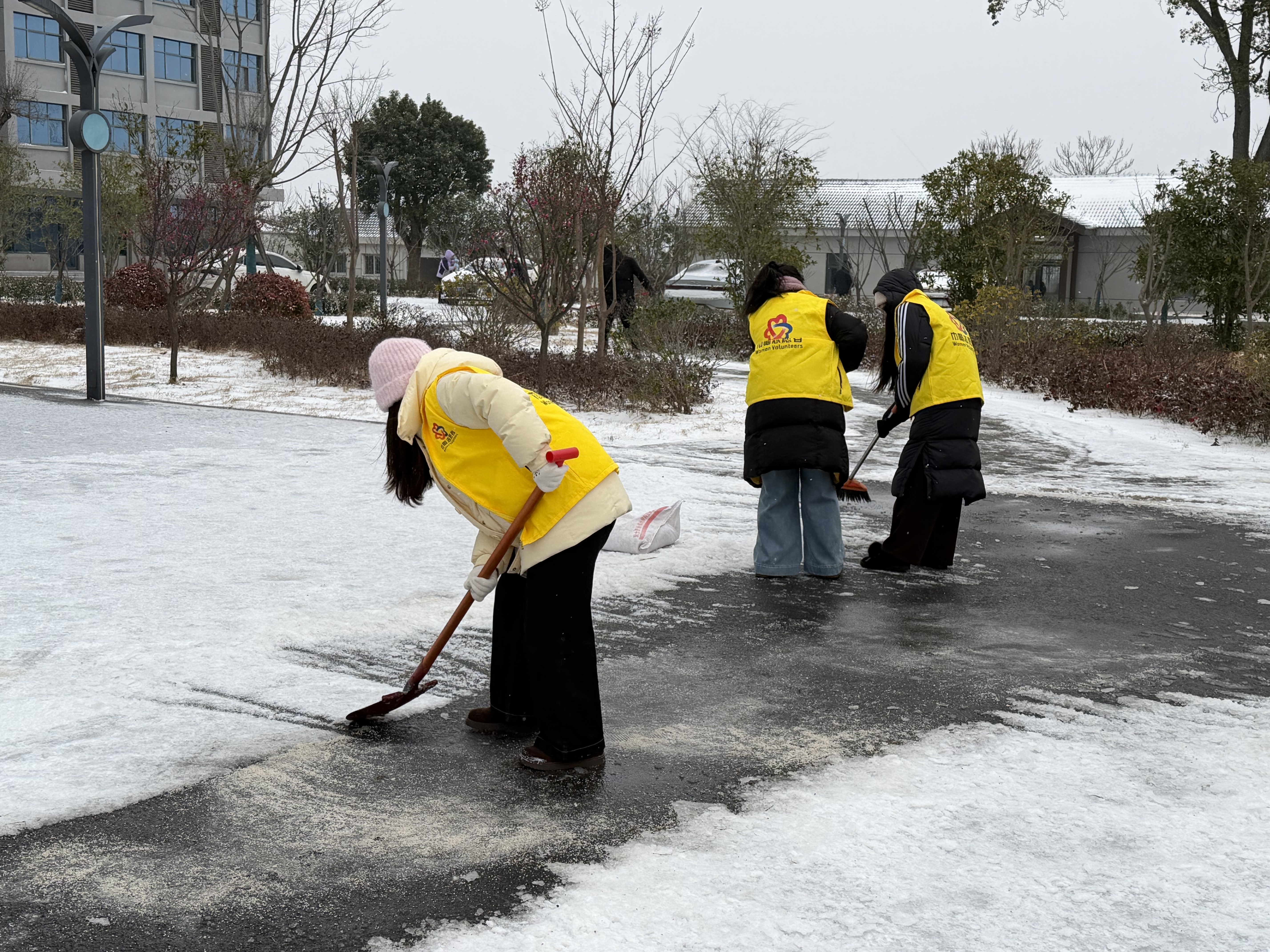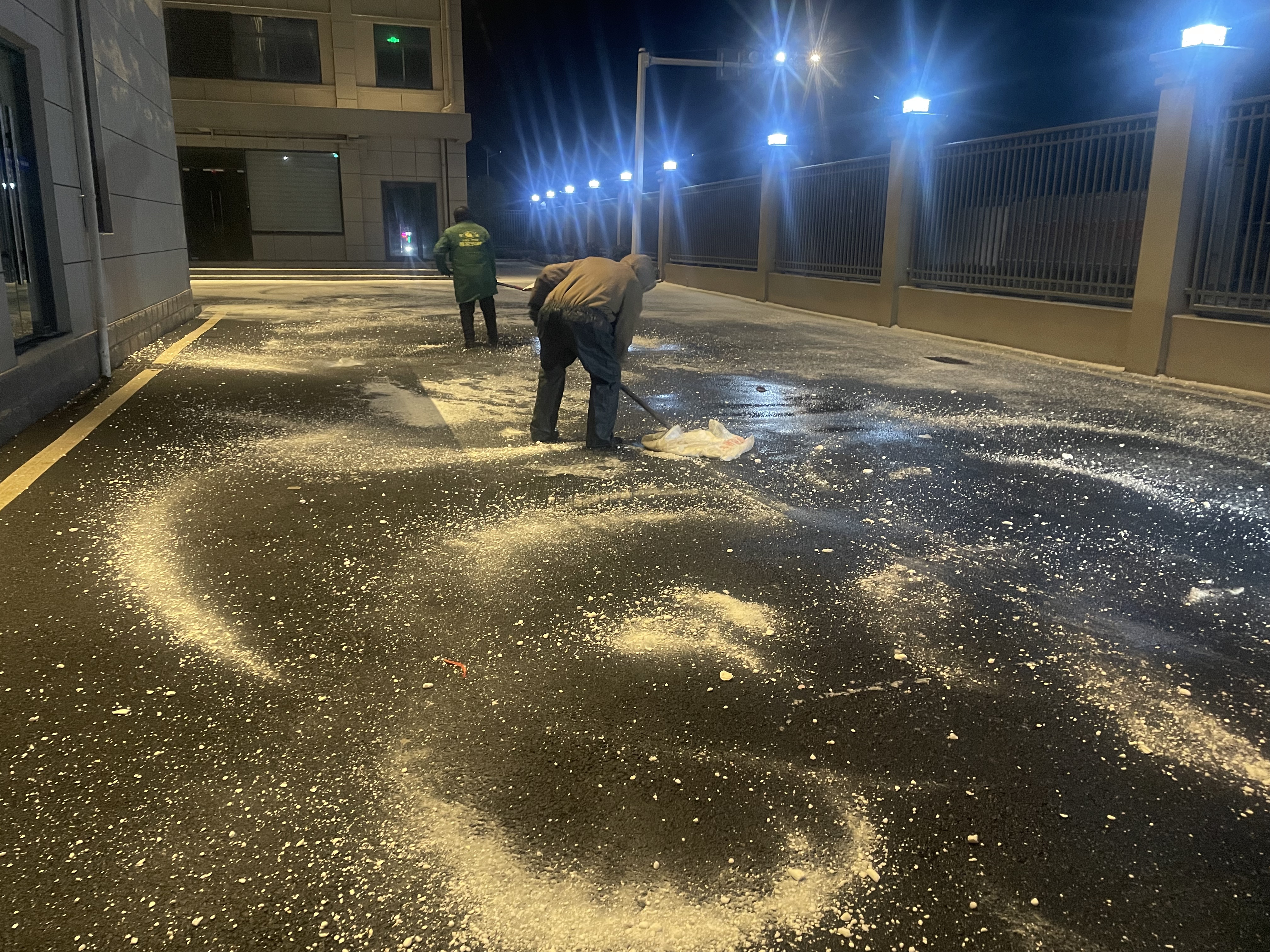 该街道机关干部、热心志愿者迅速行动,组成应急救援队奔赴一线。他们手持铁锹破冰开路,协助卡车启动脱困,在重点路段撒盐融雪。