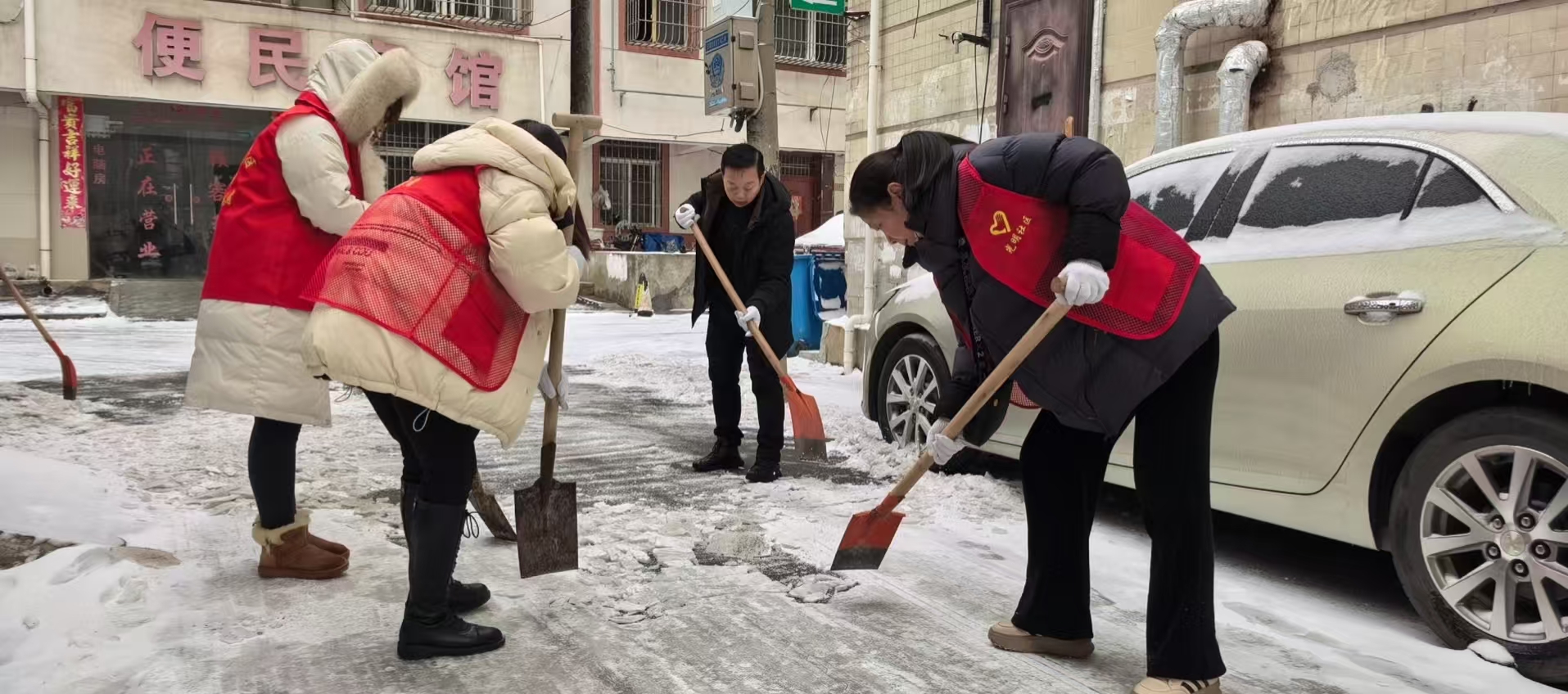 该镇对刘垸桥、新垸桥等5处重点桥梁及部分急弯陡坡路段精准施撒融雪剂。寒风凛冽中,干部群众挥动铁锹、铲雪的身影成为最动人风景线。