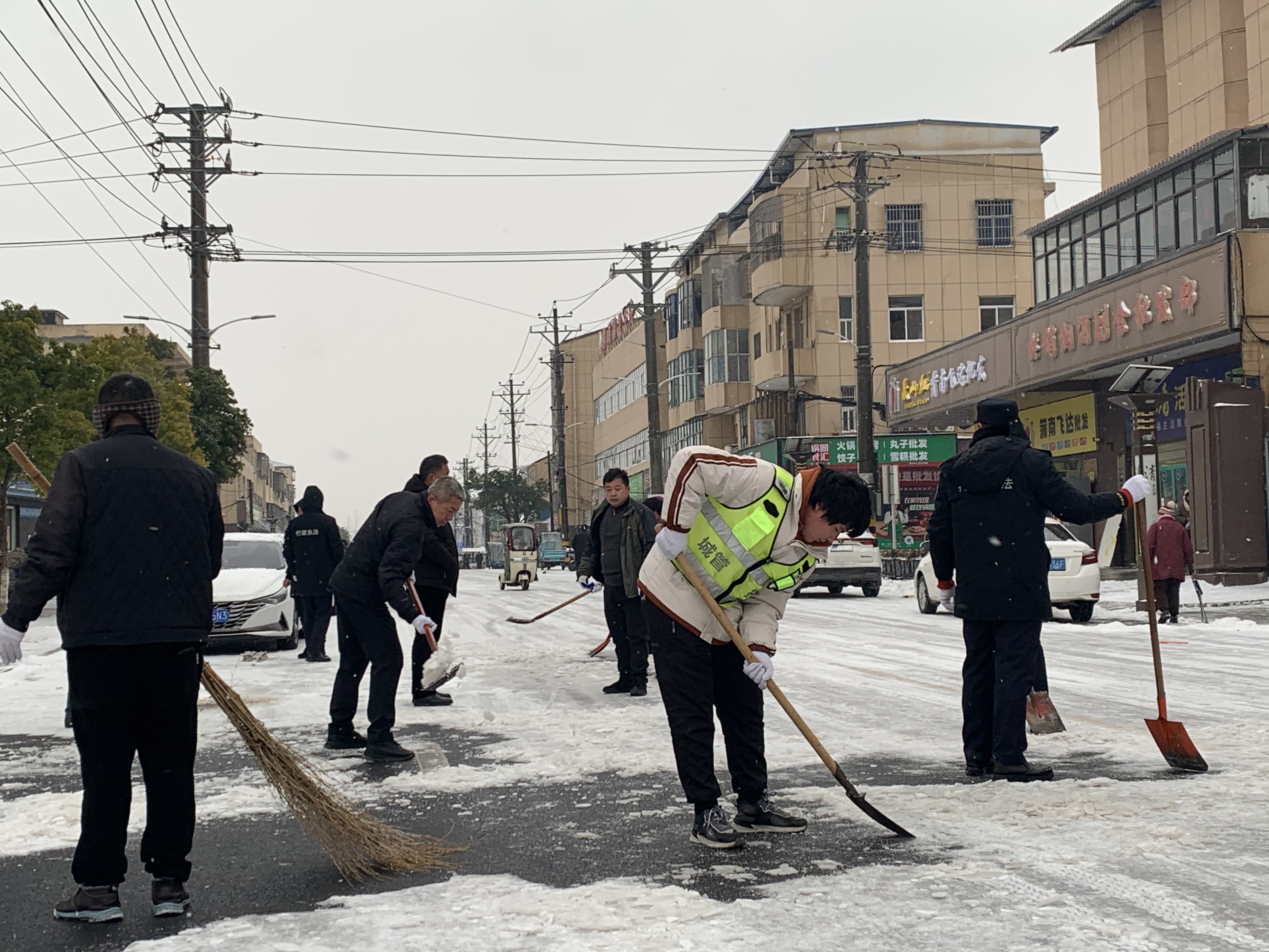由于气温骤降,应城市黄滩镇便民服务中心门前及周边道路积雪结冰,1月20日,应城市黄滩镇便民服务中心组织全体工作人员开展破冰除雪专项行动,为群众开辟“暖心通道”。