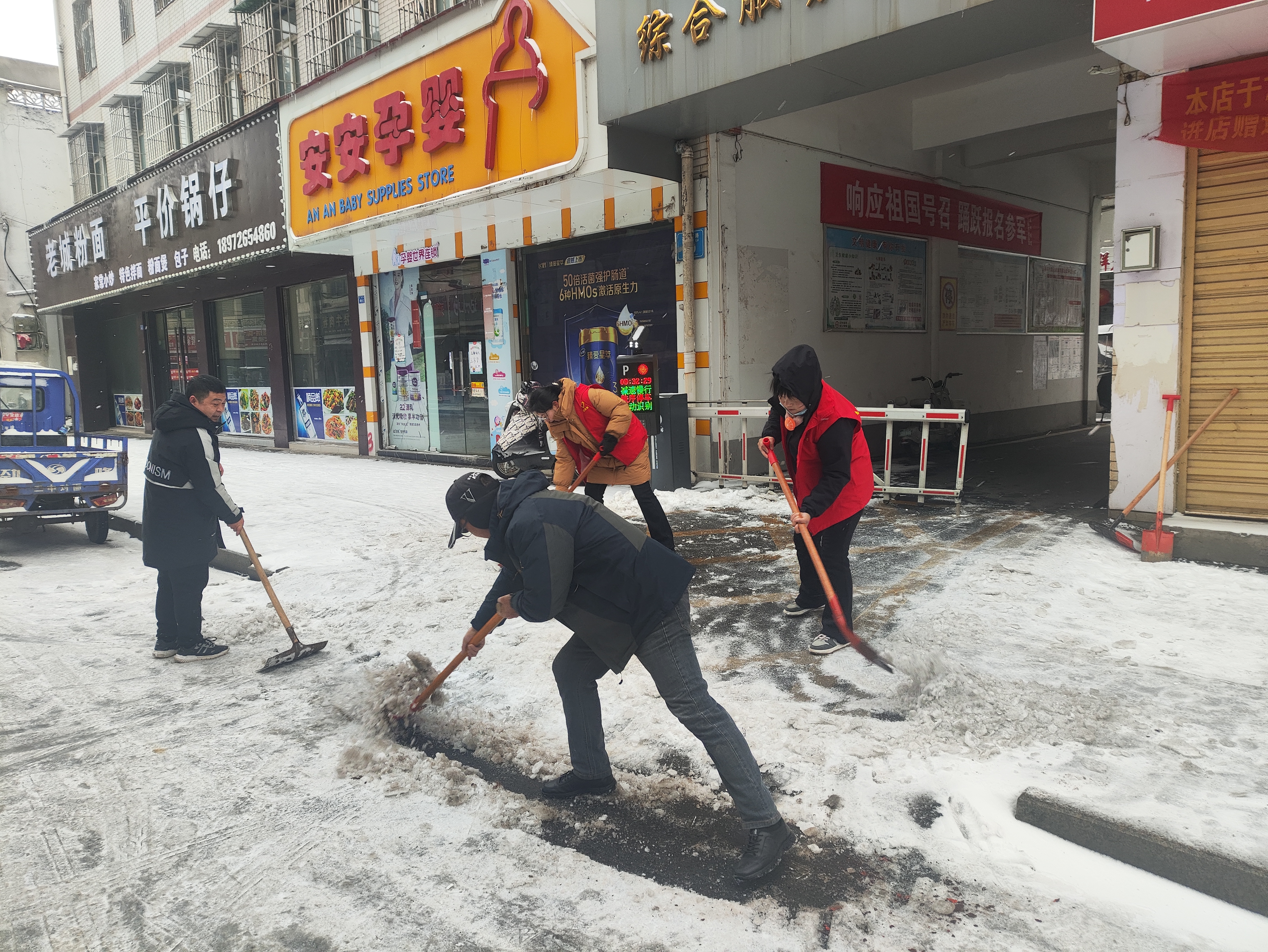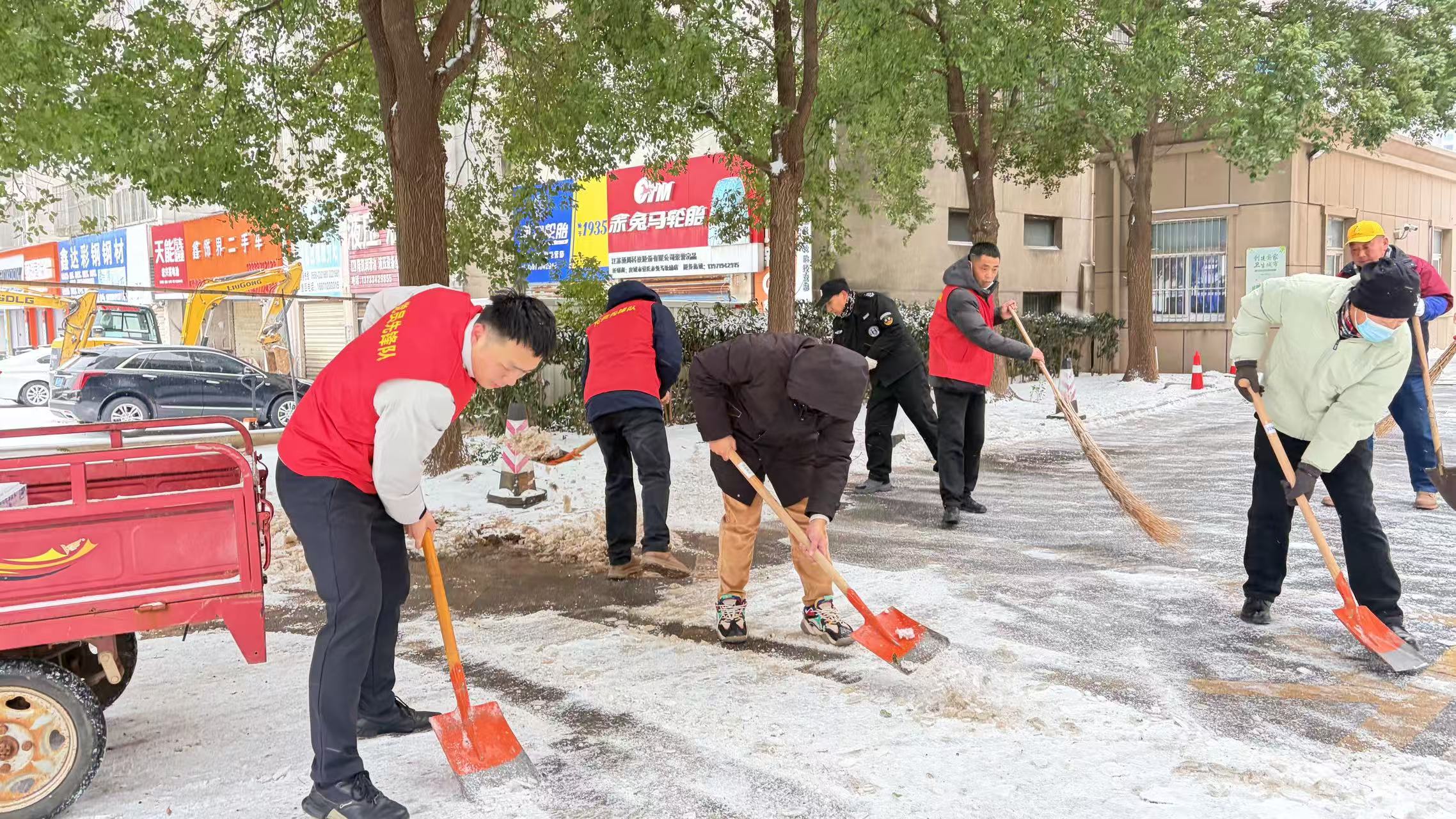 开发区组织全体机关干部下沉辖区各村(社区),与志愿者队伍并肩作战,投身扫雪除冰一线,对主次干道、背街小巷、高速路口等重点区域,进行全面清扫,以“人动雪清”的效率打通群众出行“安全路”。
