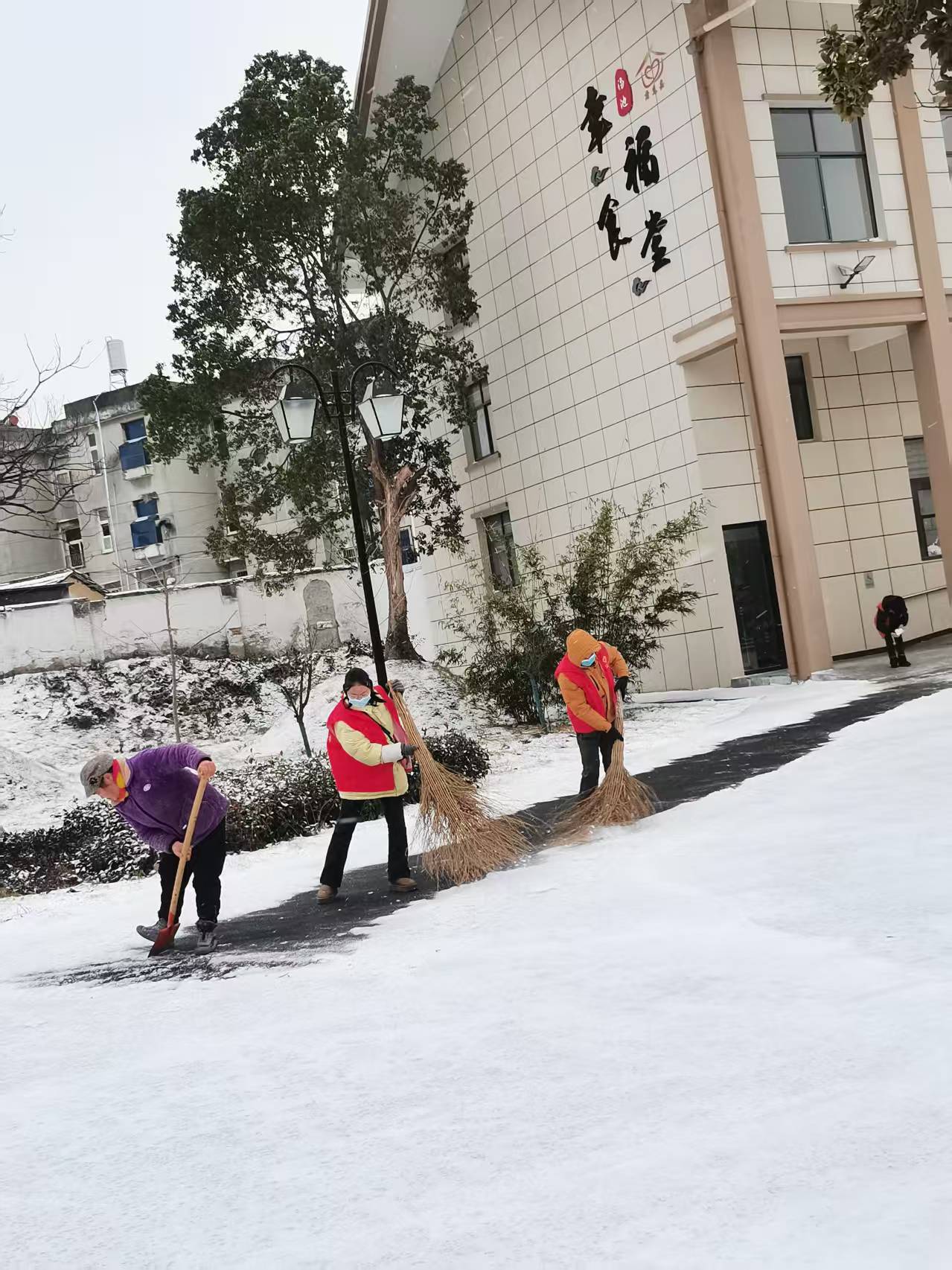 1月20日,应城市汤池镇组织90多名干部、党员志愿者与热心群众,在凛冽寒风中清理主次干道、村内道路及广场等公共区域,开展除雪铲冰护畅通行动。