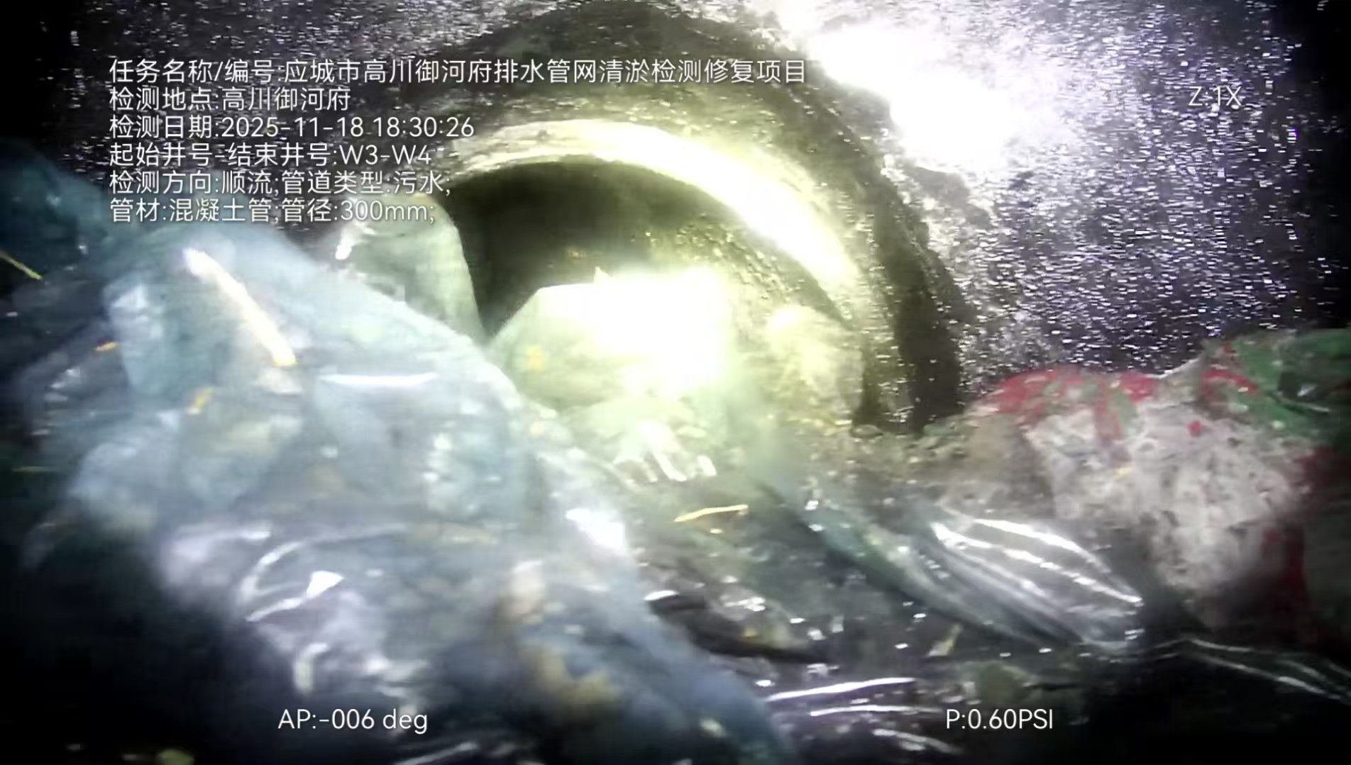 “以往靠人工下井、开挖路面排查管网隐患,效率低、风险高。”项目技术负责人说,“现在用上管道潜望镜(QV)与CCTV管道检测机器人,就像给管网做‘胃肠镜’,内部状况一目了然。”在管网修复前期,应城市对老城区核心生活污水管网启动全方位、精准化检测。