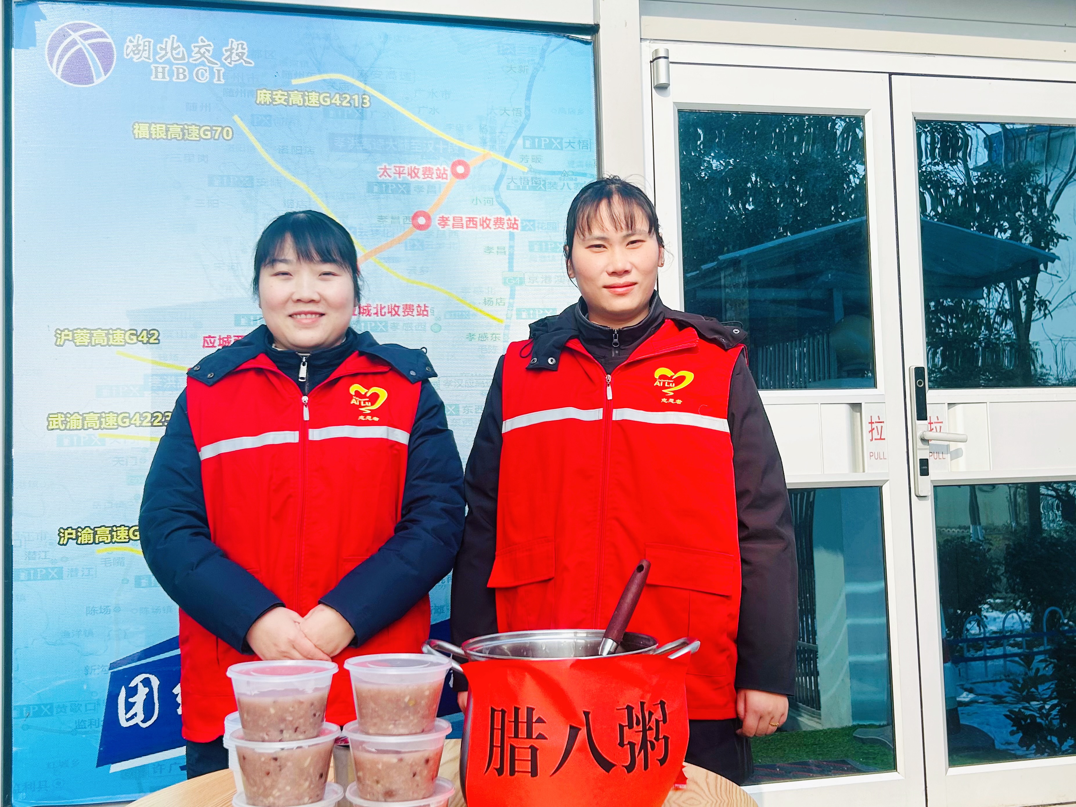 1月23日上午,湖北交投京珠运营公司应城北联合党支部组织开展了“浓情腊八 温暖同行”志愿服务活动,为往来司乘人员送上腊八粥和节日祝福。