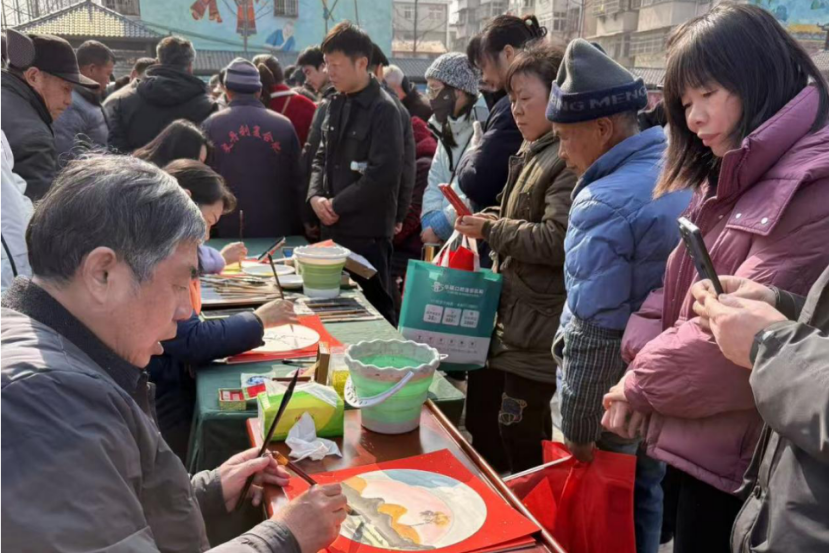 活动现场,来自应城市文联的书画老师和三合镇本土的书画家们铺展红纸、饱蘸浓墨,在长桌前即兴创作。灵动的花鸟、喜庆的福字跃然纸上,吸引大批居民驻足围观、拍照留念。