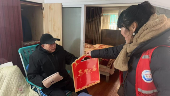 工作人员走访辖区退役军人,与退役军人亲切交流、送上新春祝福,详细询问他们身体与生活状况,倾听军旅往事。