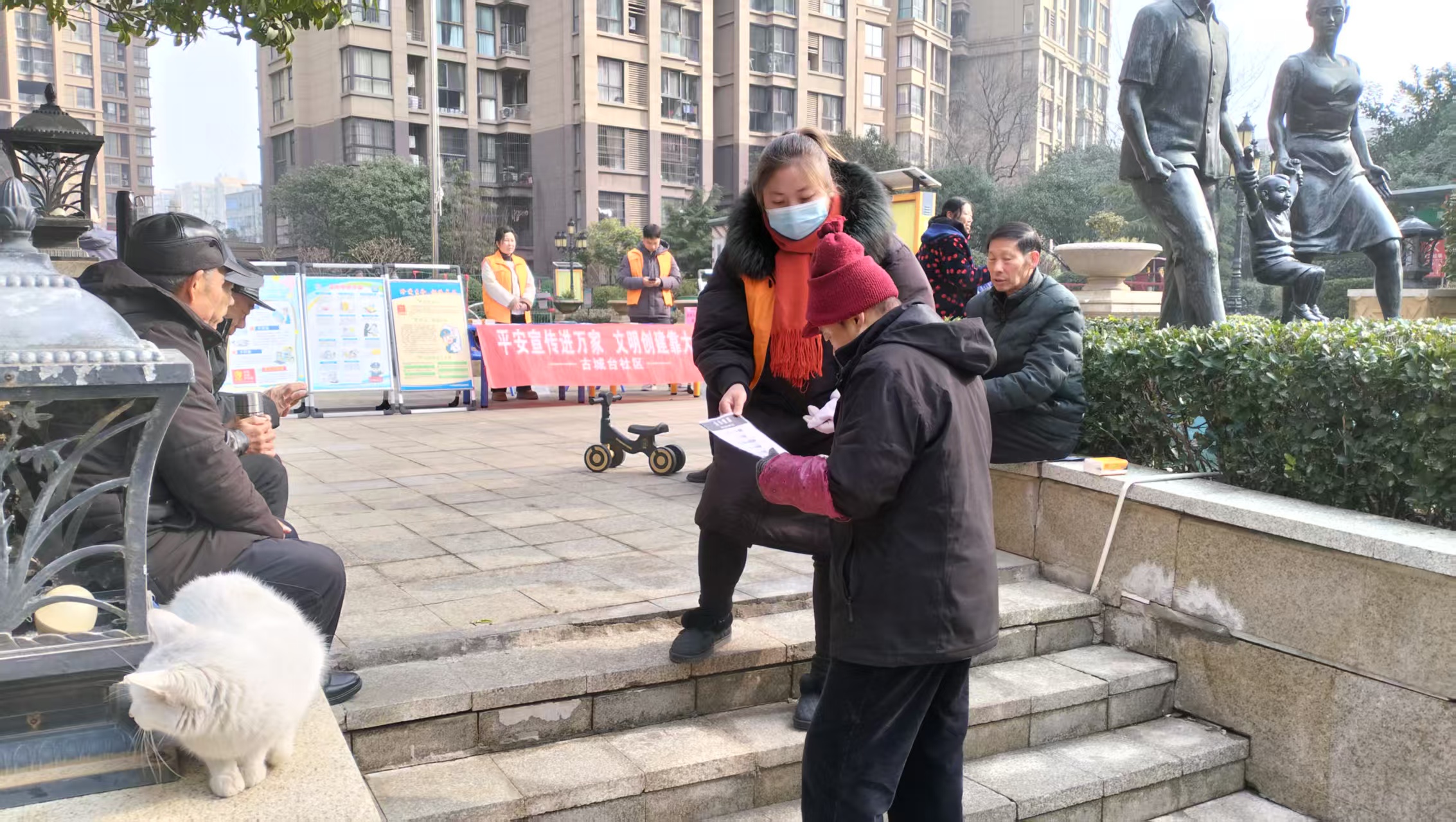 1月28日,应城市城中街道古城台社区工作人员深入瑞丰国际小区,开展了以“平安共建,文明同行”为主题的宣传活动,将平安文明创建延伸至居民家门口。