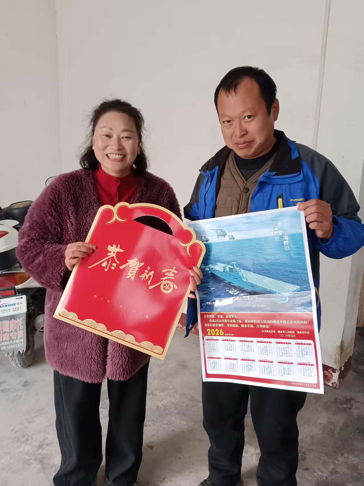 在杨岭镇耀兴村,工作人员热情的和退役军人及其家属拉家常,细致询问他们的身体状况和家庭生活情况,感激他们为祖国建设作出的无私奉献。交谈期间,工作人员送上挂历和春联,嘱咐他们照顾好身体,遇到困难及时向组织反映。