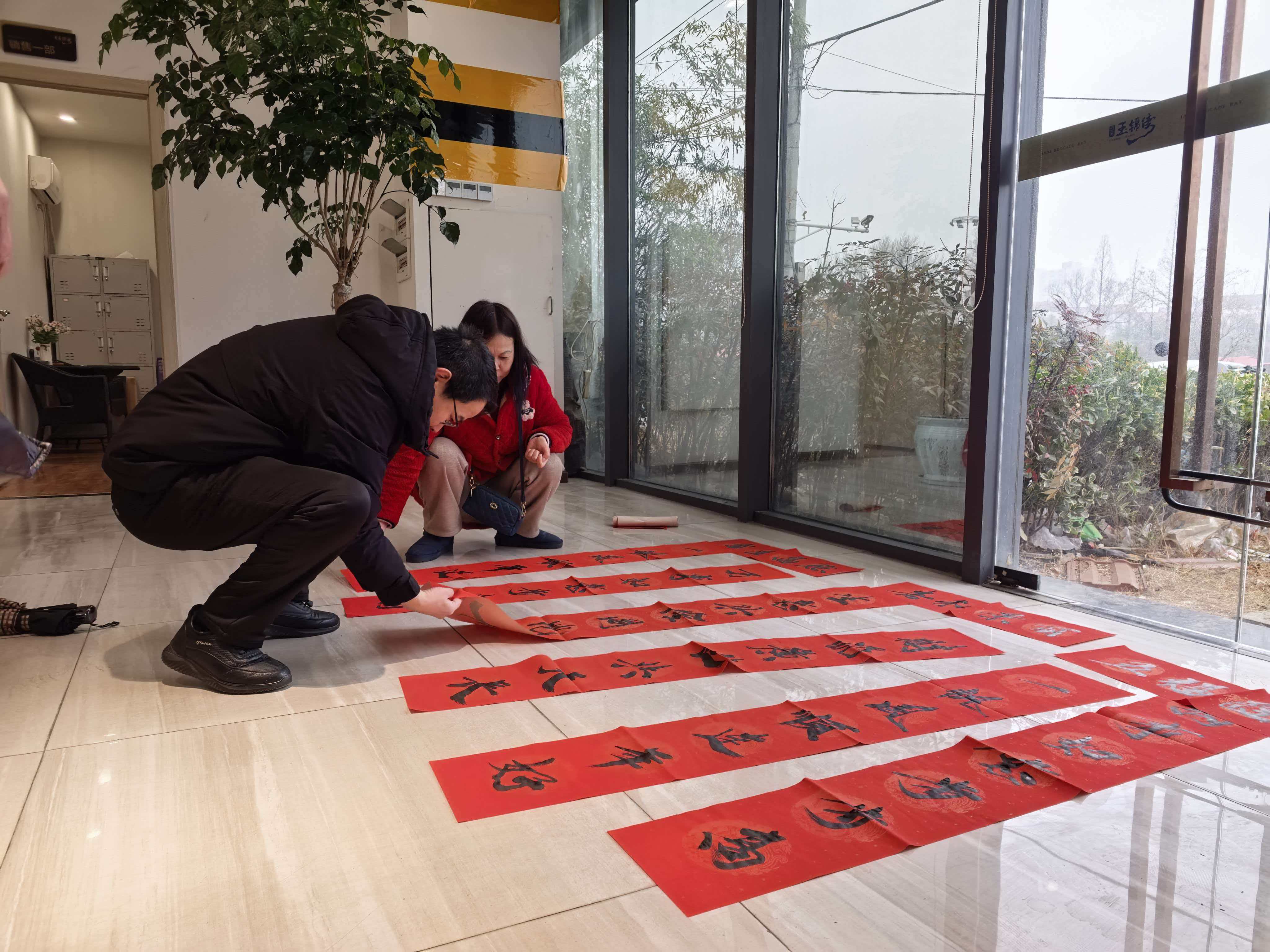 活动现场,书法家们挥毫泼墨,笔走龙蛇,一幅幅寓意吉祥的春联、一个个喜庆的“福”字跃然纸上。小区业主们纷纷挑选心仪的春联,有的驻足欣赏书法创作,有的拿着刚写好的春联满心欢喜。