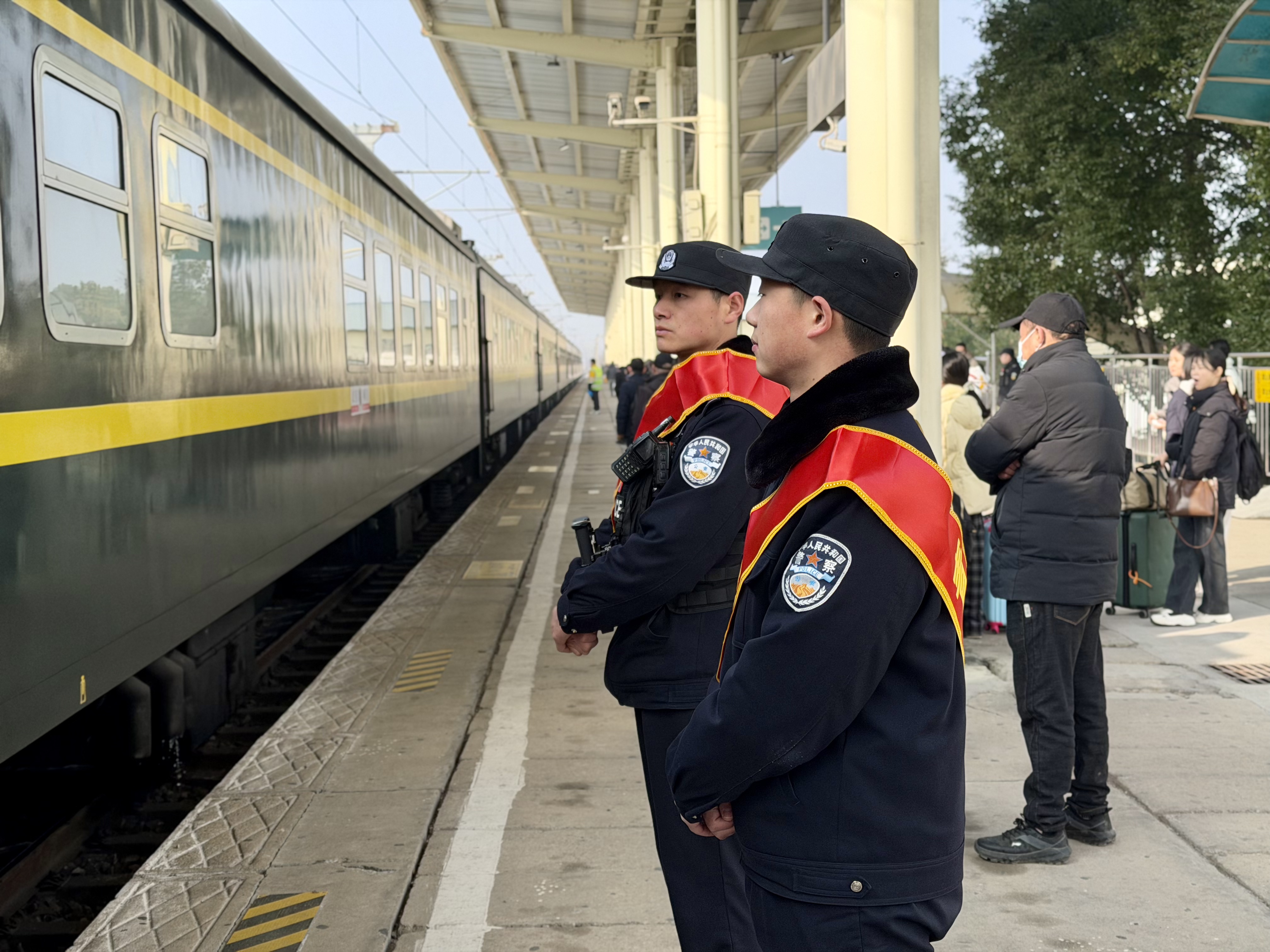 站台上,民警们列队而立,身姿挺拔。当绿皮列车缓缓启动、鸣笛驶出站台时,他们以标准的注目礼送第一趟应城站始发列车离开,用坚守为旅客的平安旅途保驾护航。