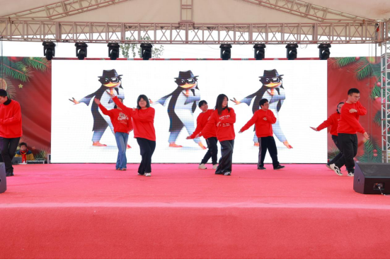 《企鹅舞》《精忠报国》《一路向前》等文艺节目点燃全场激情,歌声里满是富邦人同心筑梦的豪情。