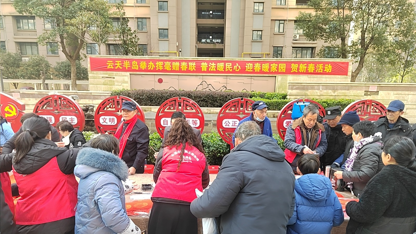 近日,应城市云天半岛物业携手城中街道碾屋社区、小区业委会,共同举办“挥毫写吉语 迎春暖半岛”主题活动暨法律知识宣传活动,为全体业主送上新春祝福。