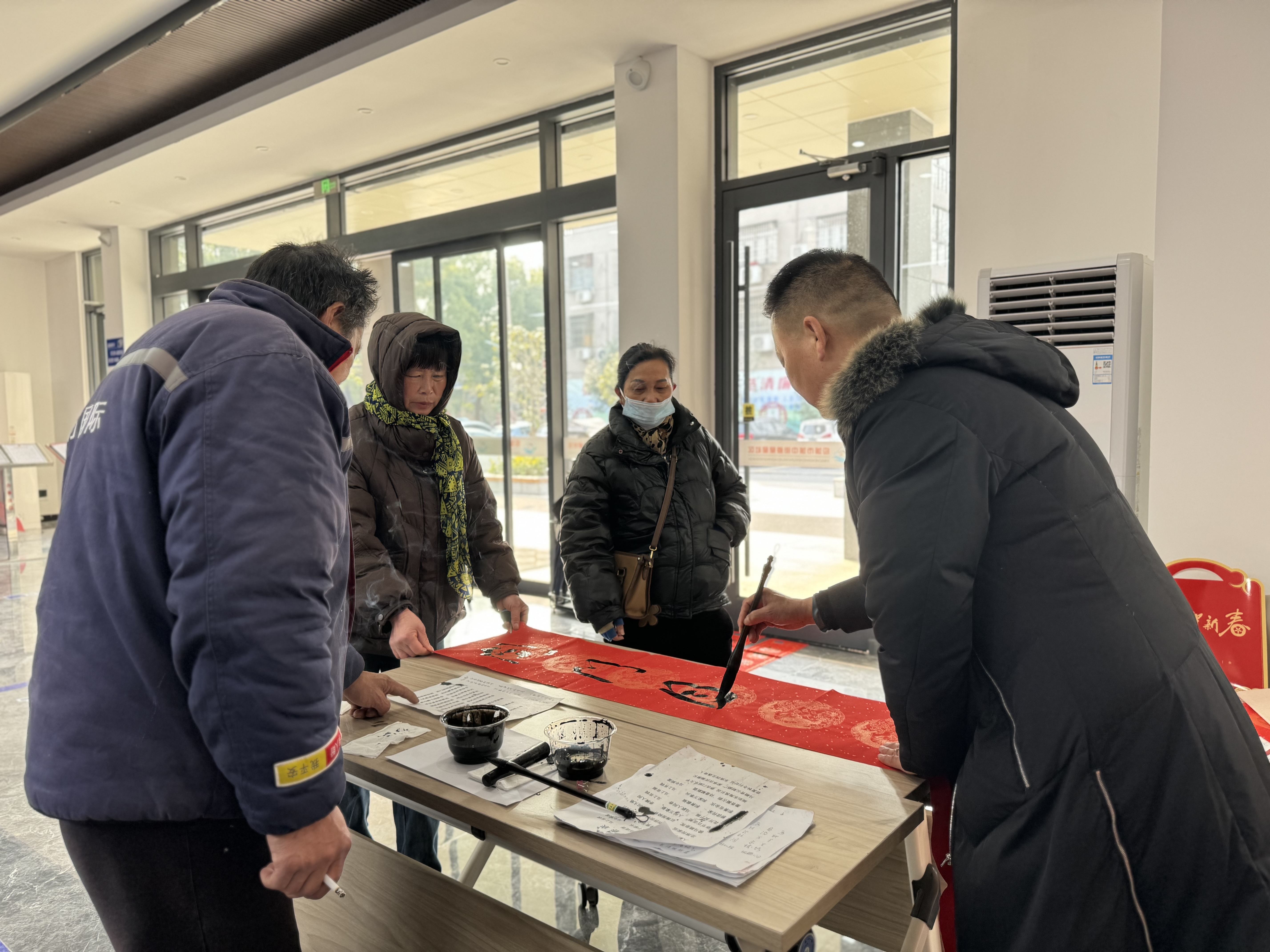 “瑞马迎春家旺人”“吉星照户业兴昌”......活动现场,社区特邀多位书法爱好者挥毫泼墨,一笔一画间尽显书法神韵。饱含美好寓意的春联跃然纸上,红底黑字的春联,不仅承载着新春美好祈愿,而且传递着社区对居民的暖心关怀。