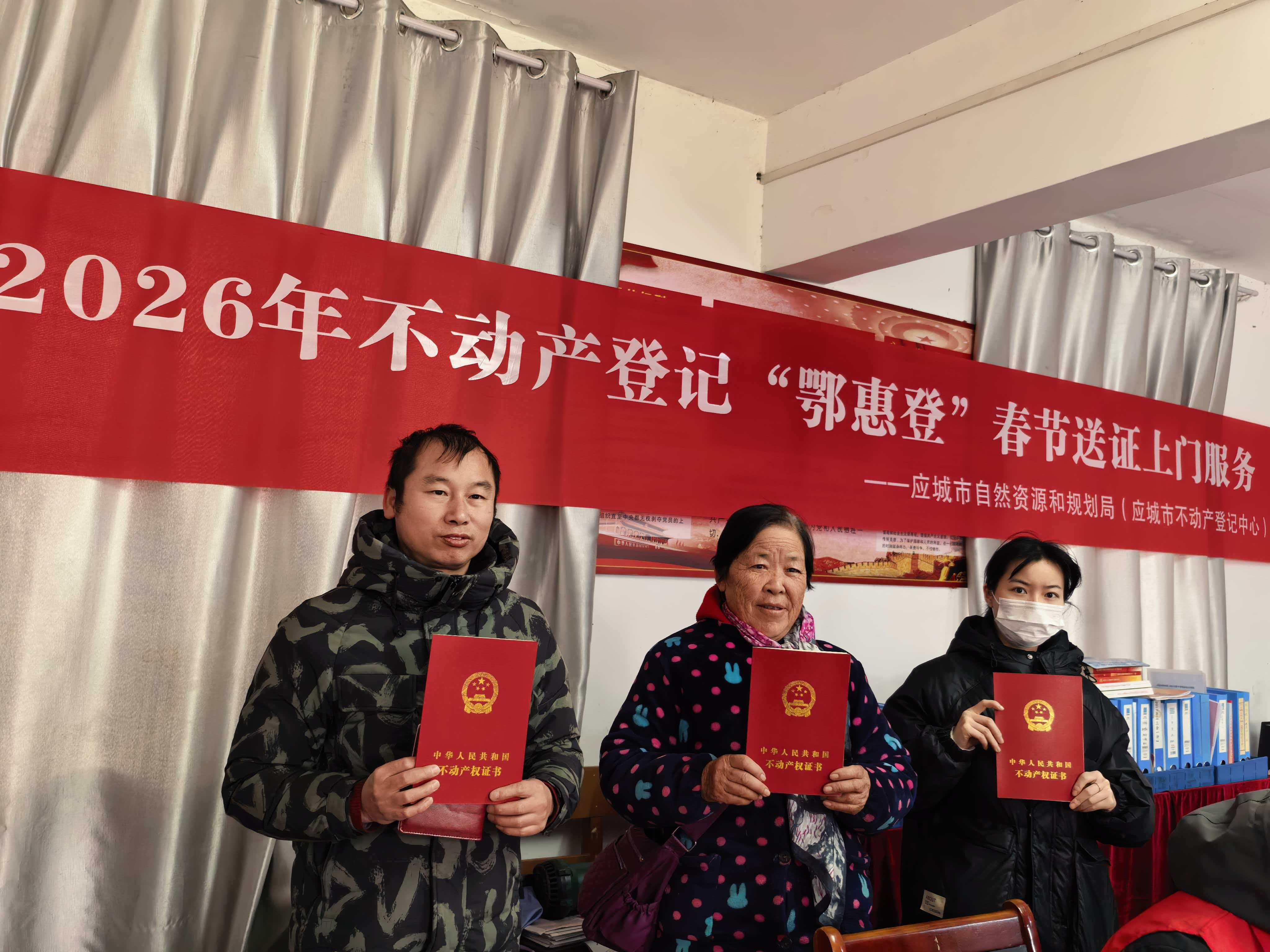 2月6日,在应城市陈河镇彭万村,一场暖意融融的集中送证活动正在举行。由应城市自然资源和规划局确权登记股骨干人员和应城市不动产登记中心“鄂慧登”服务队成员组成的“送证下乡”服务队,化身政策“宣讲员”、业务“办理员”和证书“快递员”。
