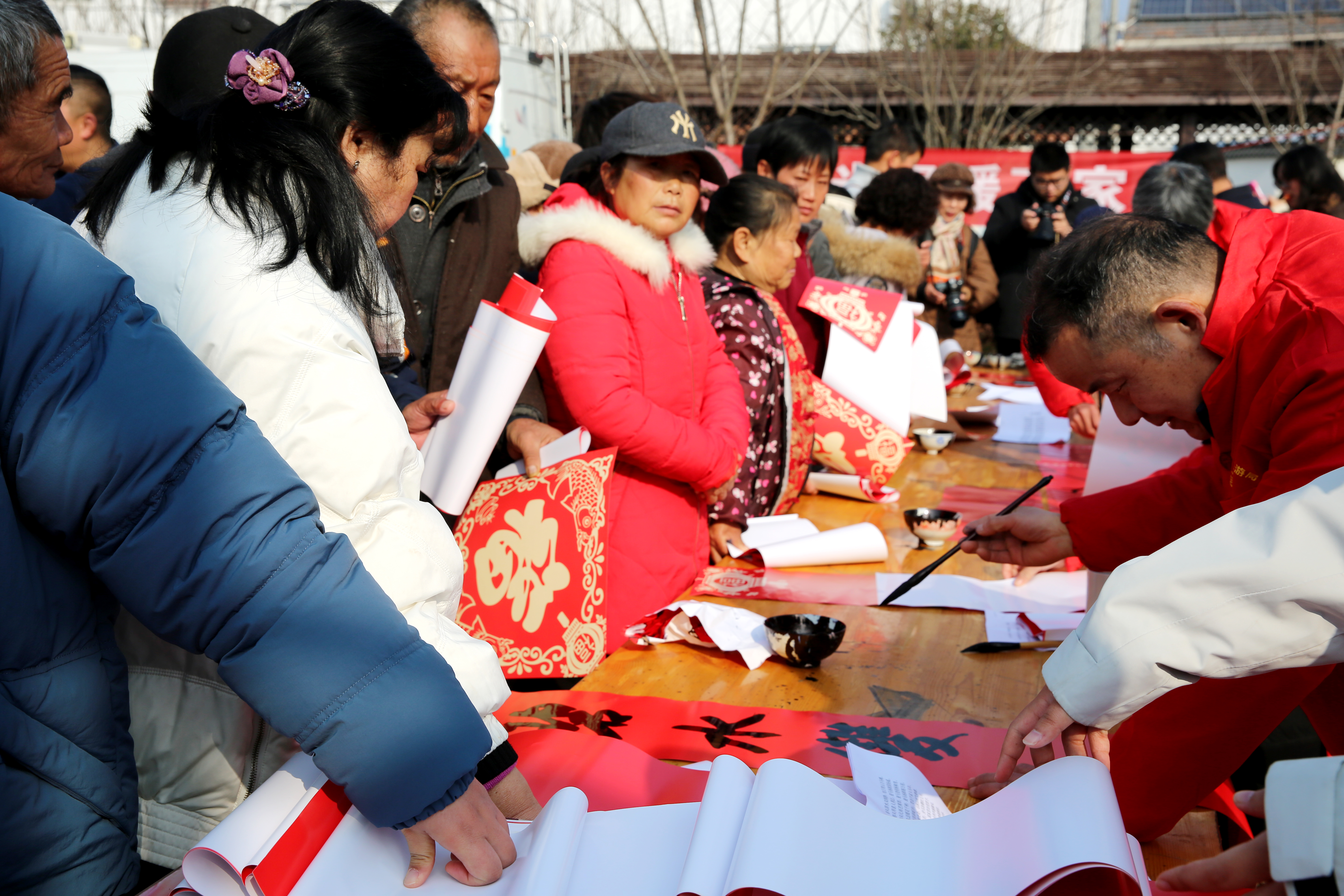 “这比印刷的更有温度、更有感情!”捧着墨迹未干的春联,居民满脸笑容。