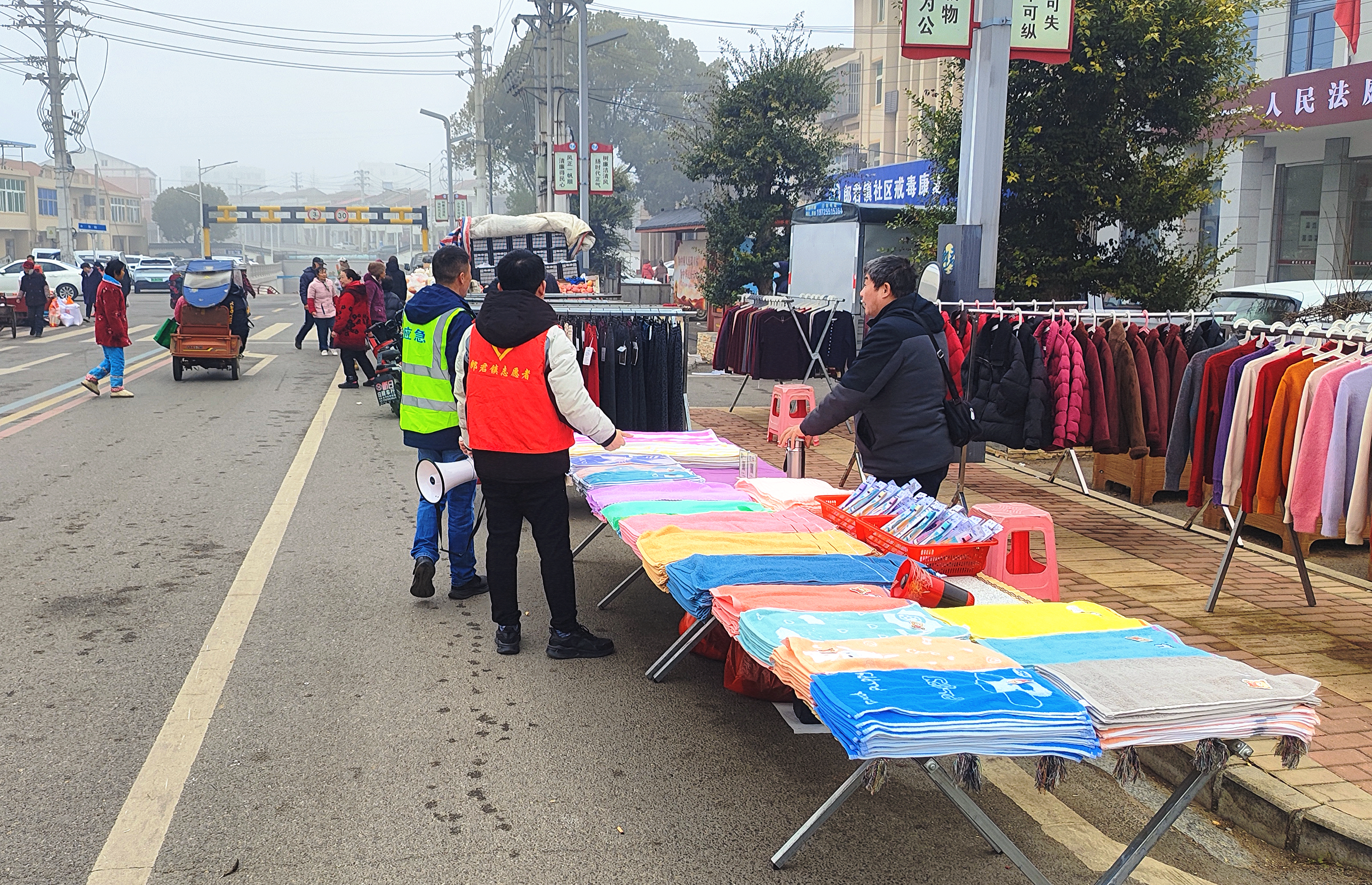 春节临近,应城市郎君镇组织镇村(社区)工作人员与志愿者开展交通疏导与秩序维护,引导车辆有序通行、规范停放,耐心劝离违规占道商贩,缓解交通压力,避免拥堵混乱。