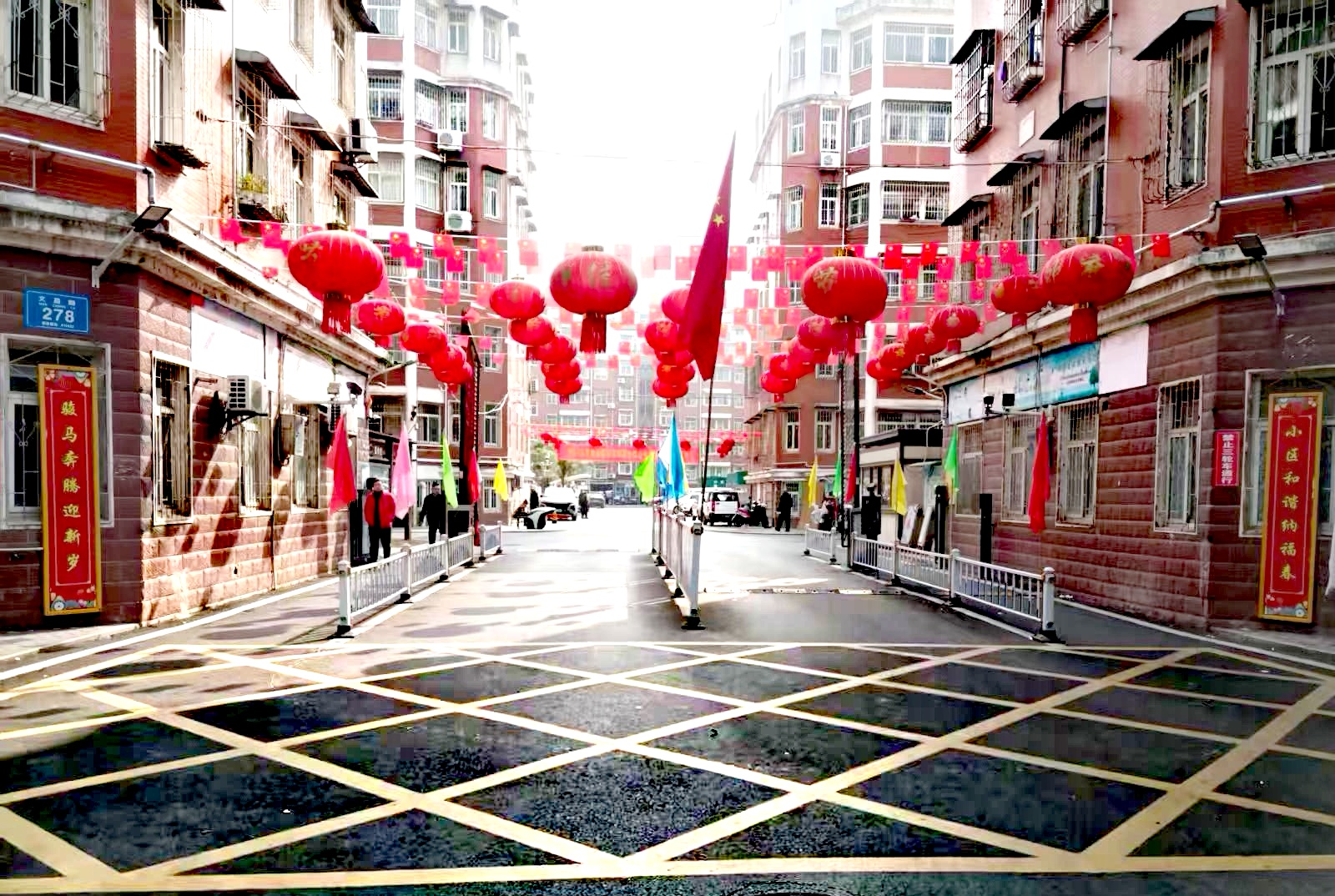 一面面红旗、彩旗迎风招展,一盏盏大红灯笼高高悬挂,一串串中国结错落点缀,处处洋溢红火吉祥的节日气息,让小区居民抬眼可见年味、驻足可感温情。
