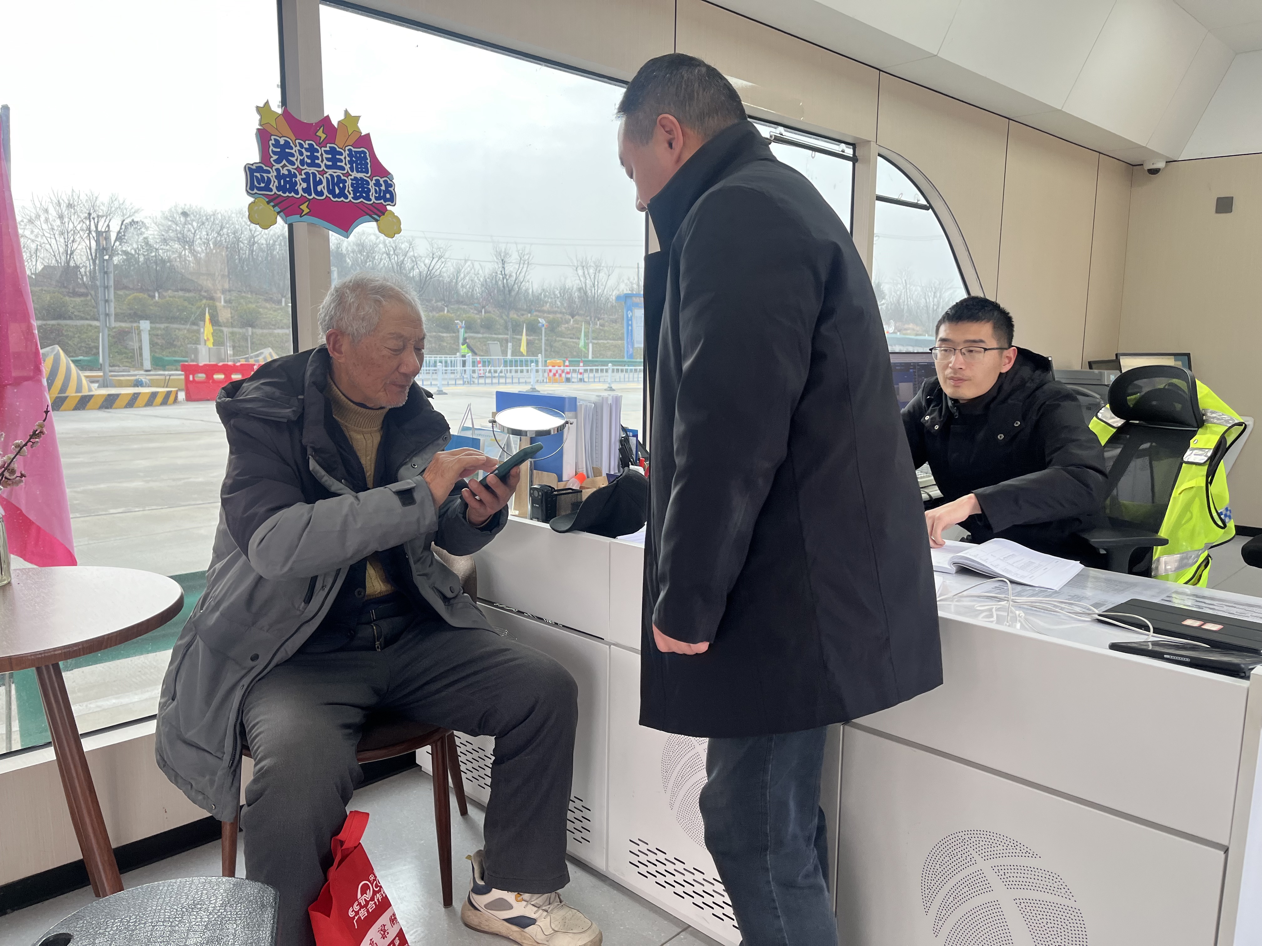 2月10日,在应城北收费站入口处,77岁的周大爷裹着一件褪色棉袄,手拿红色帆布包,颤巍巍地向高速车道挪步。面对即将误入高速的老人,应城北收费站工作人员迅速上前,耐心劝阻,最终将他安全护送至目的地。