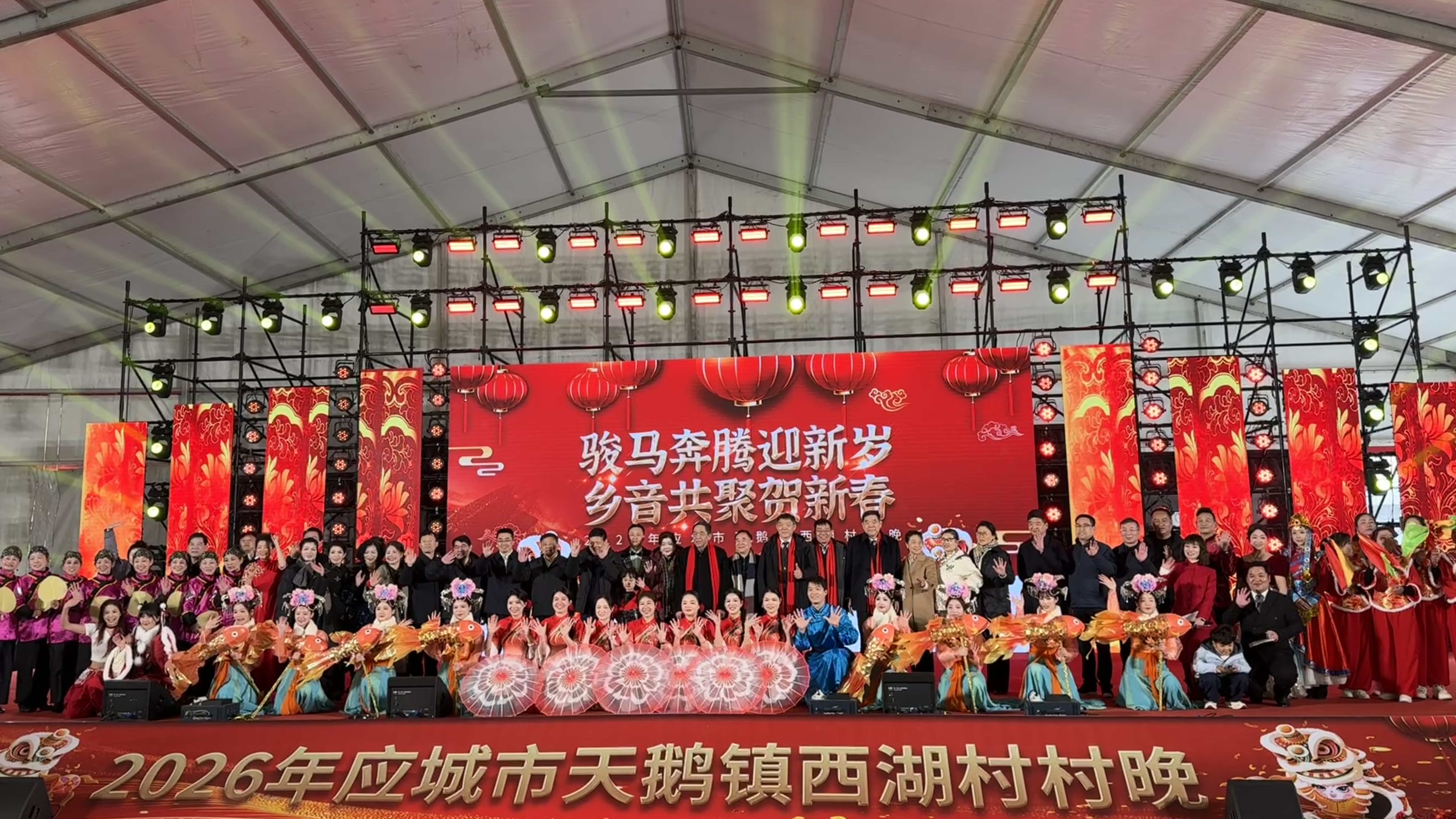 歌声袅袅辞旧岁,乡音浓浓贺新春。 2月17日(正月初一)下午,应城市天鹅镇西湖村沉浸在一片欢乐的海洋中,“骏马奔腾迎新岁 乡音共聚贺新春”2026年西湖村晚活动精彩上演。