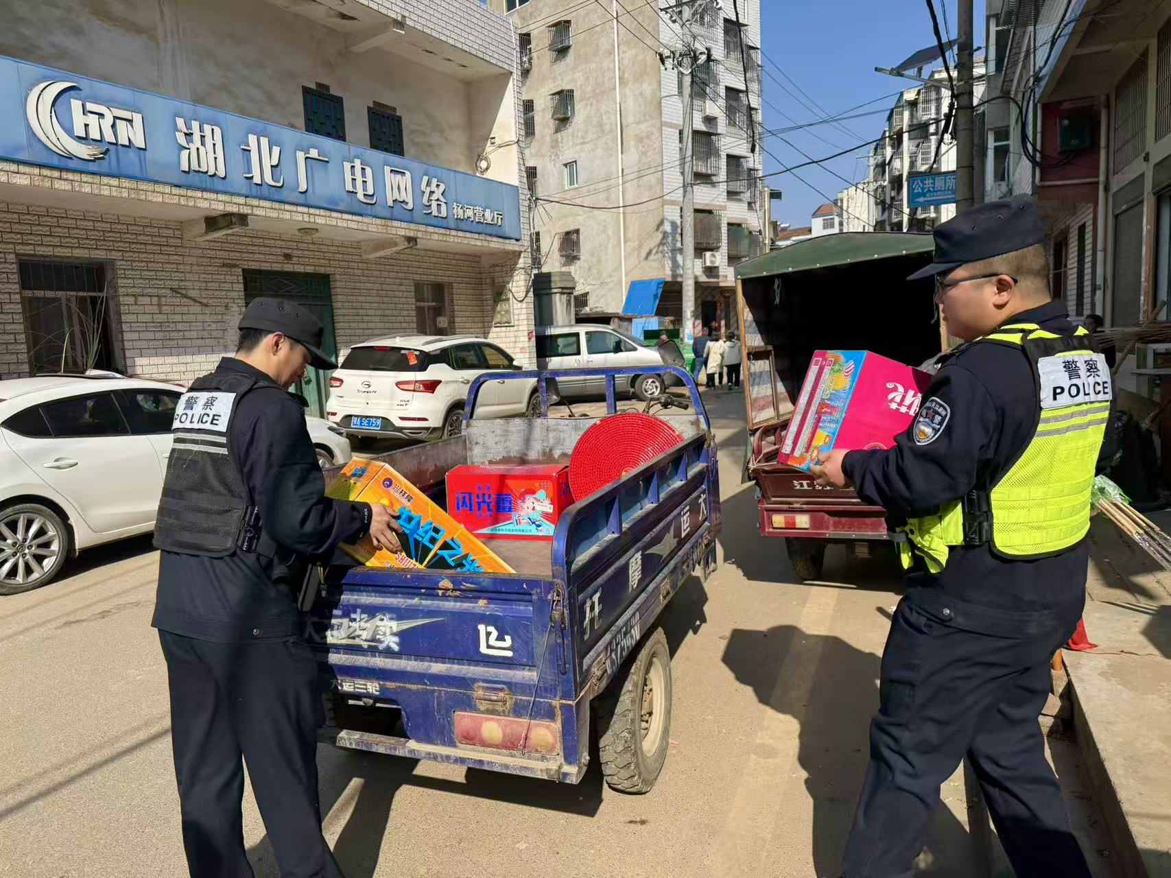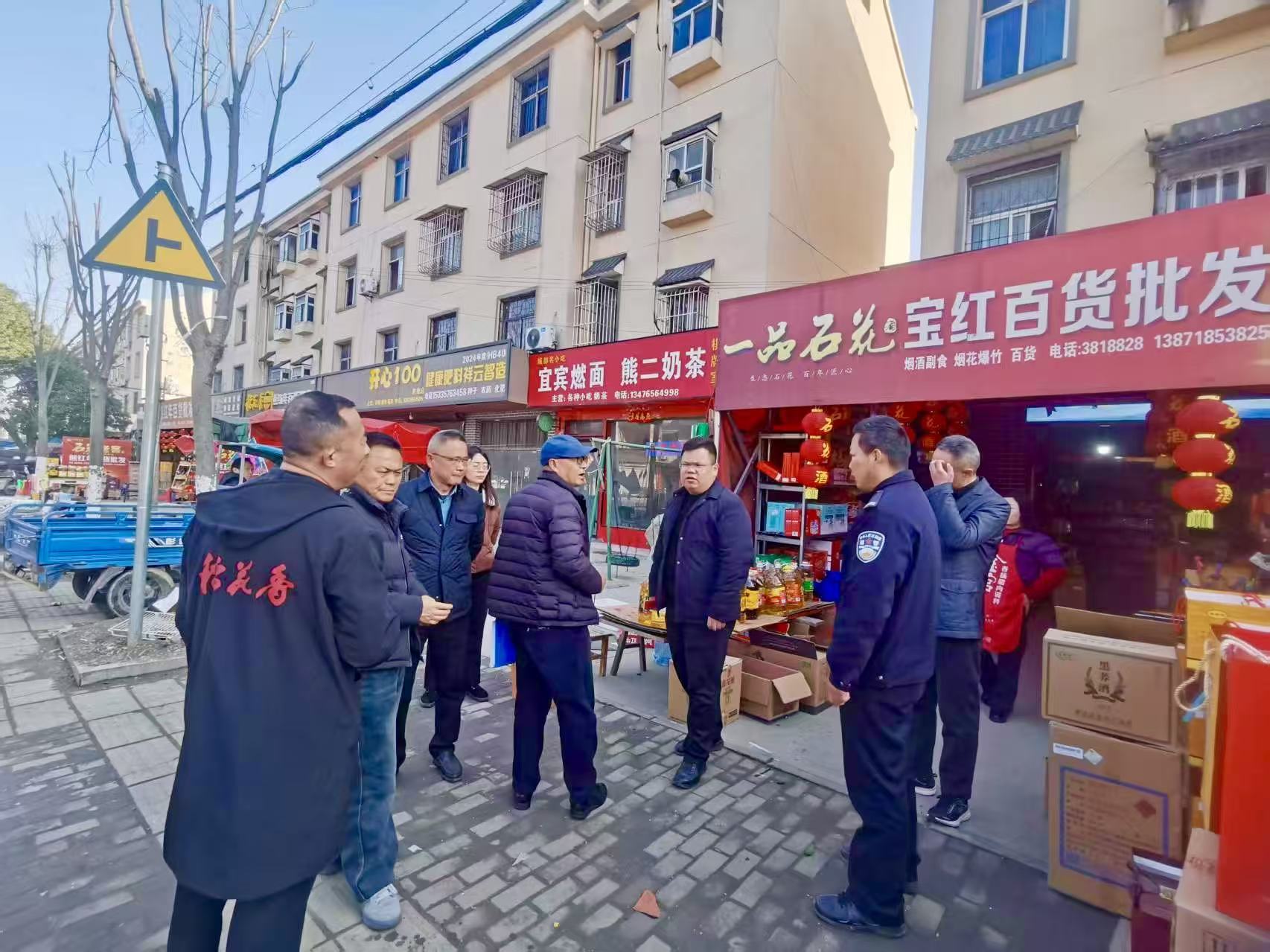 该镇统筹调度安监、综合执法及派出所等多方力量,组建联合检查组,深入辖区大街小巷,对小商品店铺、集贸市场等可能涉及烟花爆竹销售、储存场所展开突击巡查。