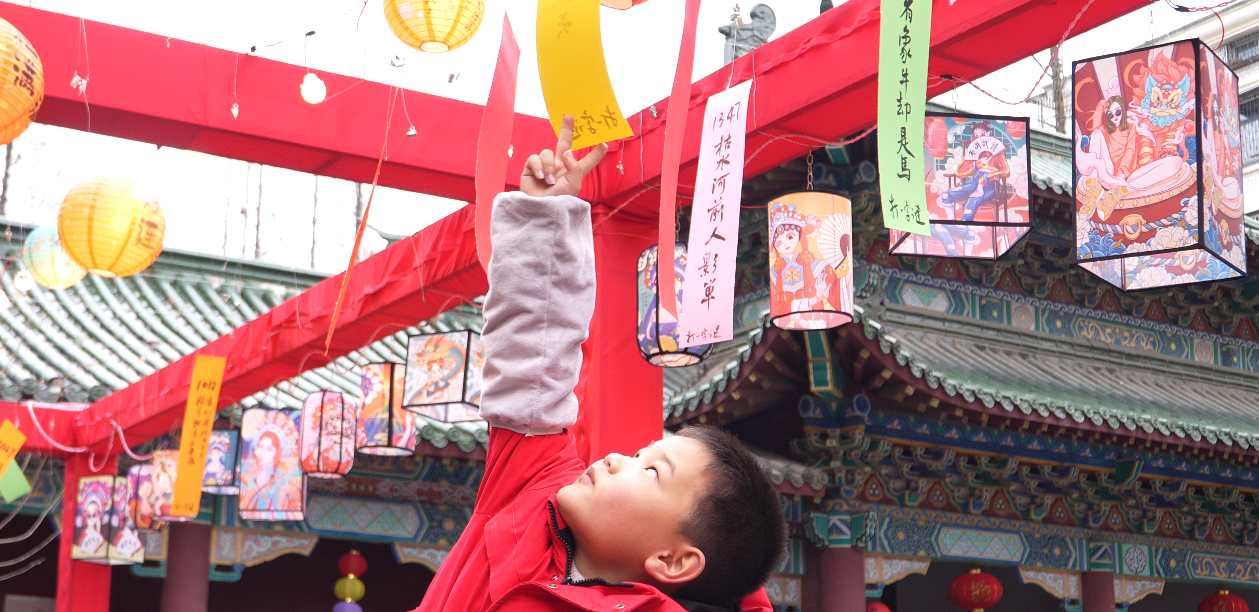 此次元宵盛宴分为猜灯谜、汉服秀、音乐会、相亲会、非遗互动等6个板块。下午3点,由近百名文化艺人组成的民俗展示队敲着锣鼓、舞着“双龙”把整个元宵节热闹氛围拉满。