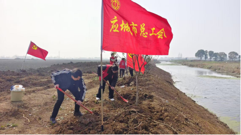 3月12日,应城市总工会联合共青团应城市委、应城市妇女联合会,在应城市黄滩镇临江口村、幸福公园共同举办“栽下希望树 · 筑强支撑点”植树节青年联谊活动,来自市直机关、学校的百余名青年职工相聚一堂,在植绿护绿中践行生态理念。