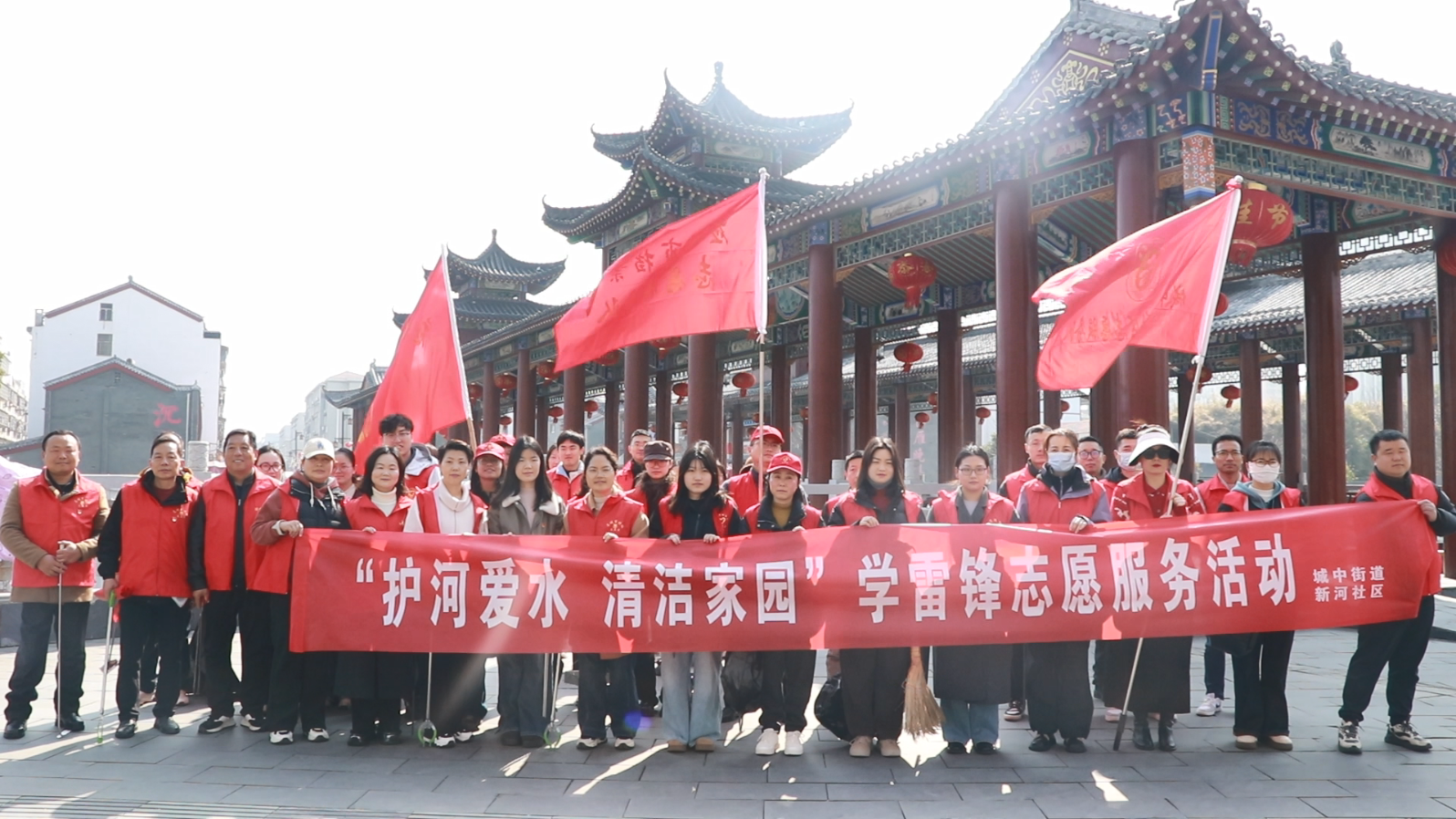 活动中,参与志愿者统一身着红色志愿者马甲,自带拾捡工具、垃圾袋等清洁用品,在现场工作人员的有序安排下分工协作,重点对辖区老县河人行道垃圾进行全面清理,细致整治沿岸周边环境。