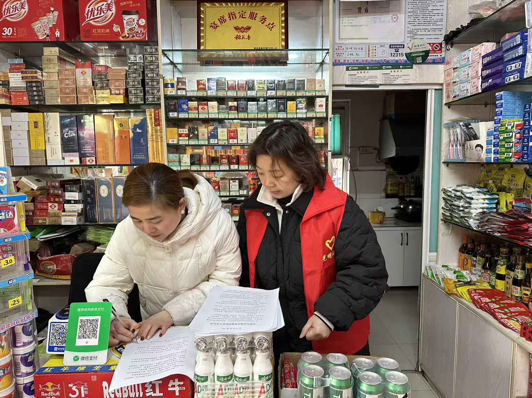 社区网格员对辖区内小商铺、小餐饮等经营场所开展拉网式排查,重点检查消防通道是否畅通、消防设施是否完好、燃气“三件套”是否安装、房屋结构是否违规改造等问题。对排查出的隐患建立台账,明确整改时限和责任人;并向门店负责人逐一签订消防安全责任书。