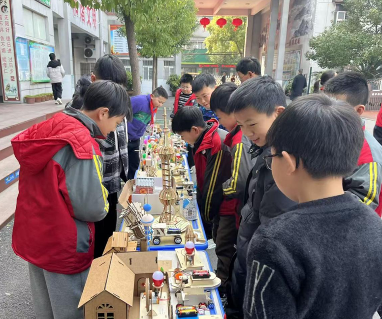 活动中,全校学生利用废旧材料,自主创作建筑模型、简易机械等科学作品,将课本知识与生活实践结合。作品在校园集中展出,吸引师生围观交流,营造出浓厚科学氛围。