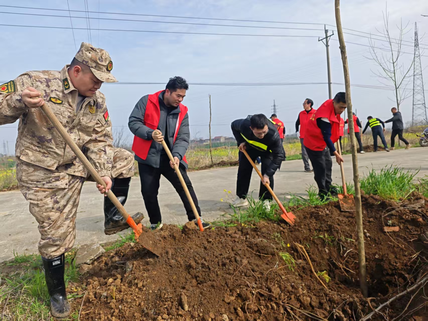 3月20日,应城市陈河镇组织镇村干部、青年志愿者及驻村队员,到该镇五七村周陈线路段开展植树活动。