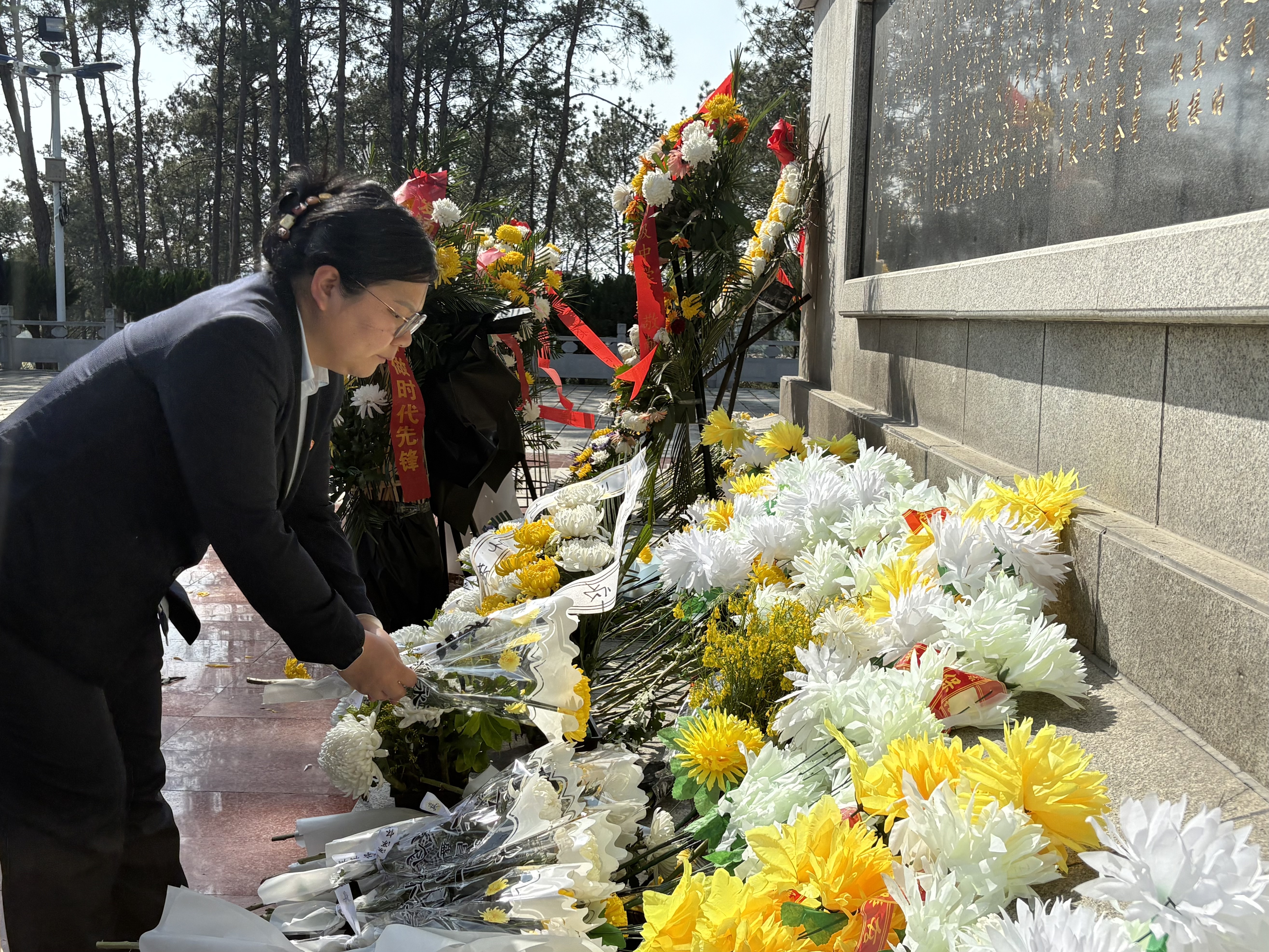 他们整齐列队,向革命先烈肃立致敬、敬献鲜花,缅怀革命先辈崇高精神与不朽功勋。